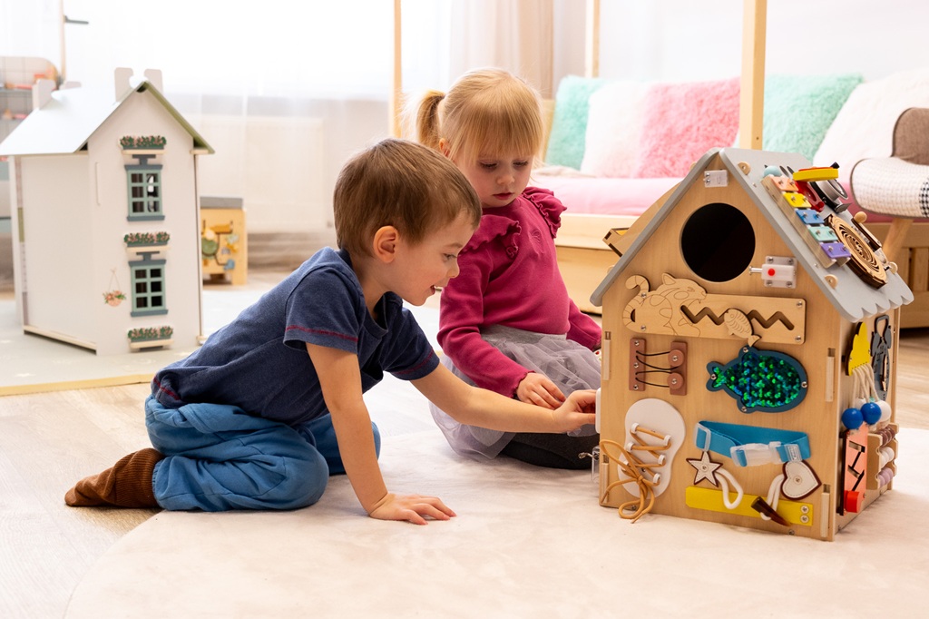 Od šnúrok až po hrajúci telefón! Tento nádherný interaktívny domček je inšpirovaný princípmi Montessori a prináša deťom nekonečné možnosti objavovania a učenia sa hrou. Každá jeho strana ponúka nové dobrodružstvo, ktoré rozvíja jemnú motoriku, trpezlivosť, zvedavosť a schopnosť riešiť problémy. Deti tu nájdu rôzne druhy zámkov, západiek a háčikov, ktoré po odomknutí odhalia tajomné dvierka, spinner na roztočenie, otočnú minútku, funkčný vypínač so svetielkom, či farebný labyrint s rybičkou. Xylofón s paličkou zoznámia deti s prvými tónmi a rytmom, zatiaľ čo hodiny naučia porozumieť času. Nechýba ani hrajúci telefón ktorý Vás zabaví najrôznejšími zvukmi aj veselými melódiami! Domček vo vnútri svieti. Motivuje deti k samostatnému objavovaniu, učí ich trpezlivosti a koncentrácii a zároveň ich pripravuje na každodenné činnosti bežného života prostredníctvom praktického tréningu. Poskytuje bezpečné a podnetné prostredie, v ktorom si deti hravou formou rozvíjajú zručnosti nevyhnutné pre samostatnosť. Kombinácia prírodného dreva s príjemnými farbami spolu s kvalitným prevedením robia z tejto hračky pekný doplnok každej izbičky alebo herne. Domček sa dodáva zložený v krabici. Hlavné vlastnosti: funkčné svetielko a hrajúci telefóndomček vo vnútri svietidodanie v zloženom stavevrátane paličky ku xylofónupodporuje samostatnosť, jemnú motoriku a koordináciu ruka-okopodnecuje kreatívne myslenie a rozvoj predstavivostisenzorická stimuláciaedukácia prostredníctvom hryinšpirované Montessoripripravuje deti na každodenné činnosti bežného životana napájanie slúžia LR44 gombíková batéria a 4xAAA batérie (nie sú súčasťou balenia)vhodné pre deti od 3 rokov