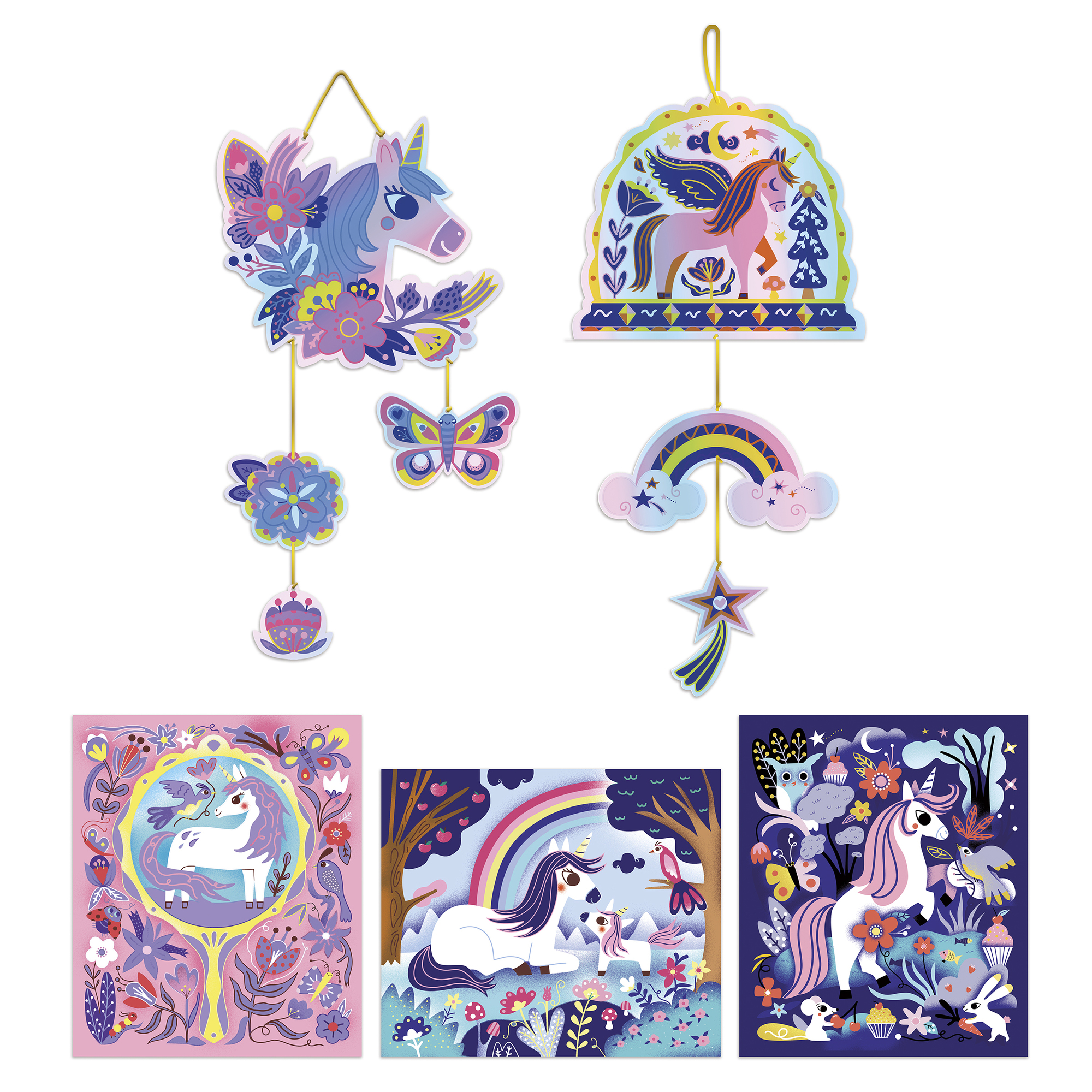 Dúhové jednorožce! Táto sada na tvorenie umožňuje vytvoriť 2 holografické závesné prvky a 3 obrázky!...zobraziť viac