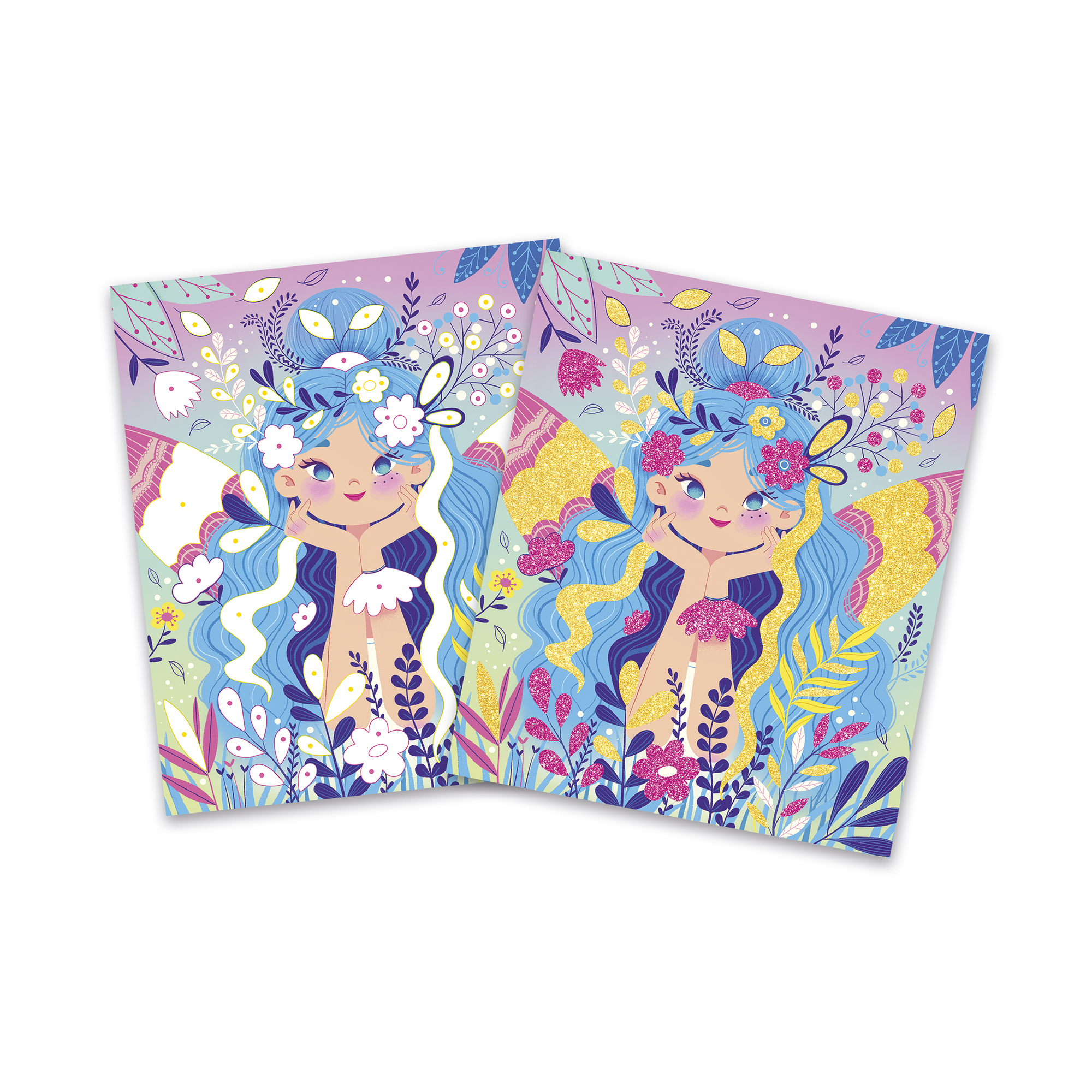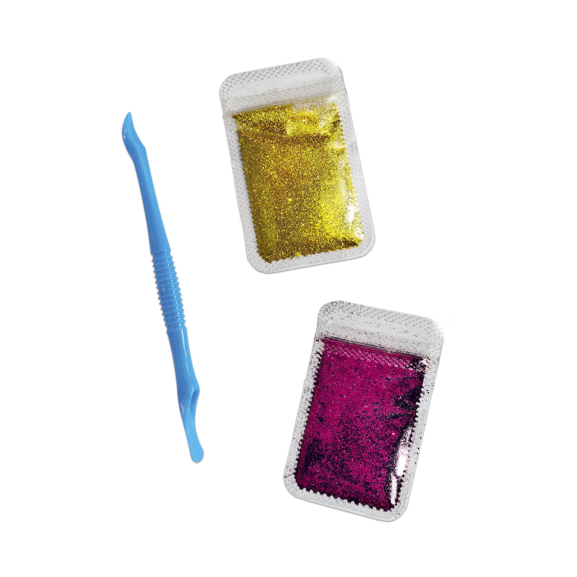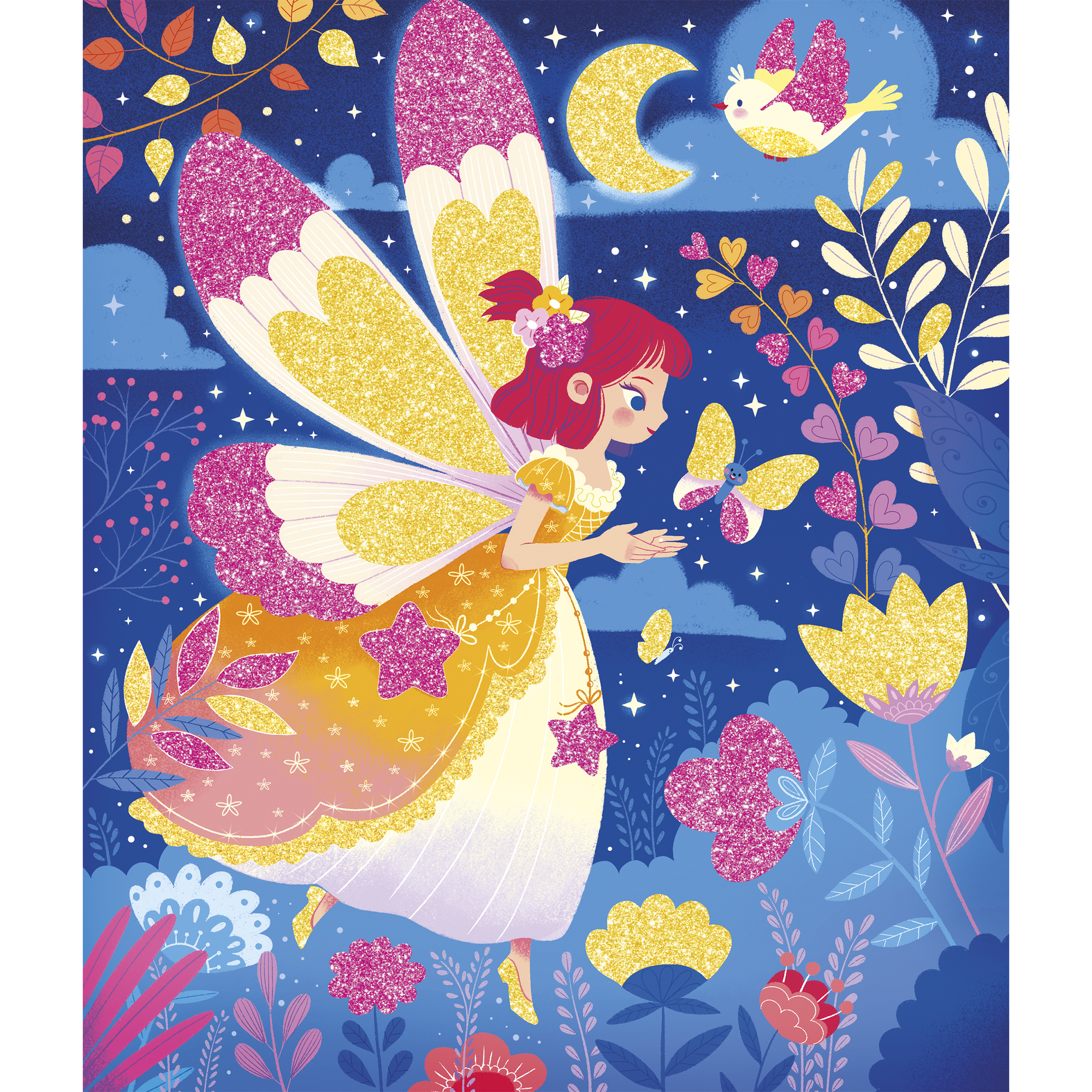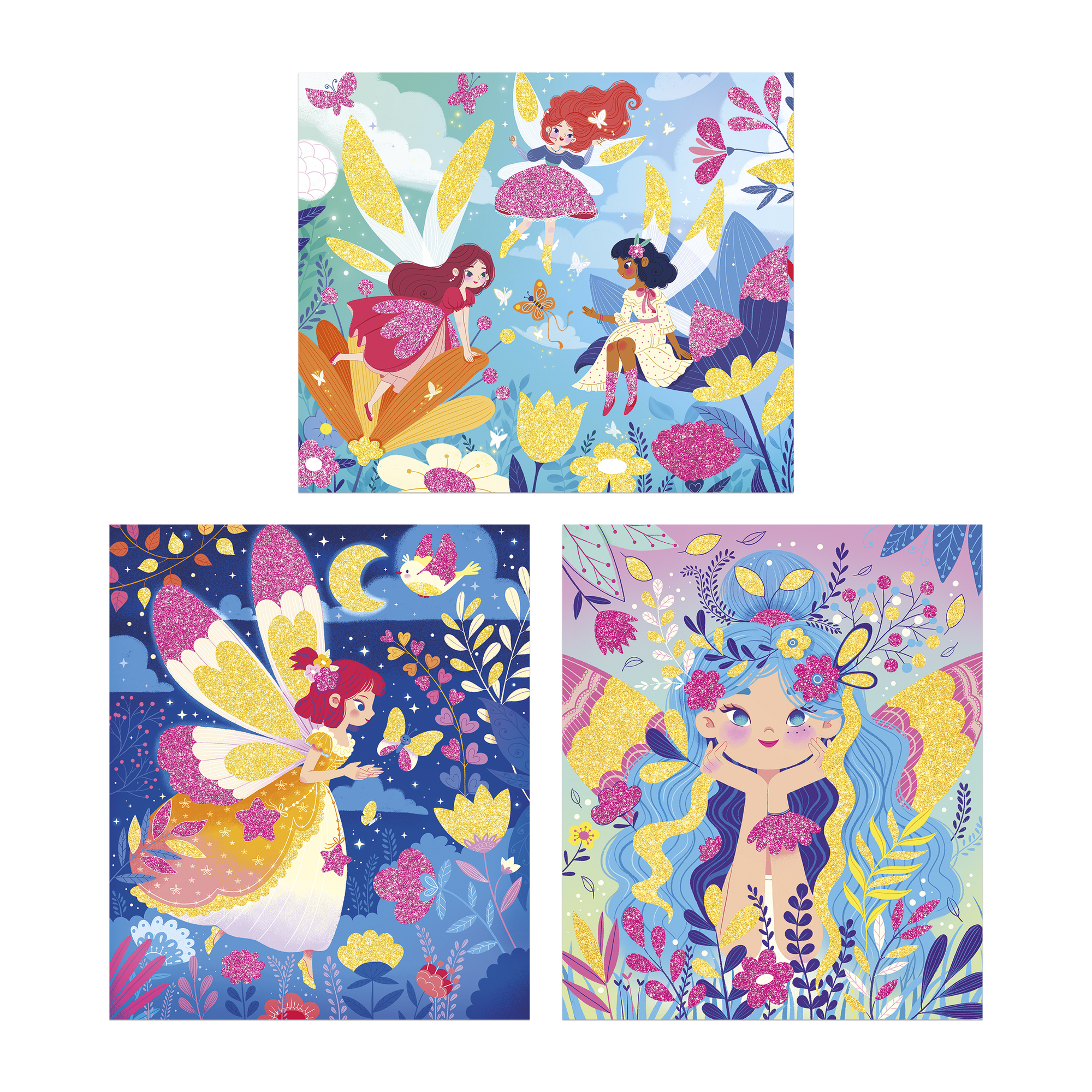 Čarovný svet... Táto sada na tvorenie sa dá použiť na ozdobenie 3 obrázkov s rozprávkovou tematikou trblietkami! Obsahuje 3 obrázky s vyznačenými oblasťami na ozdobenie (21 x 25 cm), 2 vrecká s trblietkami na zips (ružové a zlaté), 1 plastový nástroj s 2 rôznymi hrotmi (1 špicatý hrot na odlepovanie papiera chrániaceho oblasti na ozdobenie a 1 lyžičkovú špičku na vrátenie trblietok do vrecúšok) a 1 brožúrku s návodom a návrhmi. Táto aktivita, ktorá pomáha rozvíjať trpezlivosť a kreativitu, trvá približne 1 hodinu 30 minút. Je ideálna pre deti od 6 rokov.