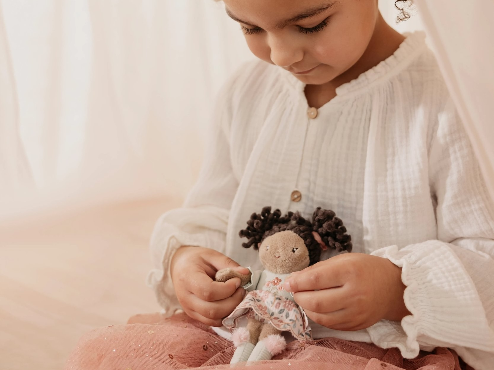 Rozkošná mini plyšová bábika Evi z mäkkého jemného materiálu je ideálna ako prvá bábika pre vaše dieťa. Bábika je vhodná na hranie aj maznanie a bude sa s ňou aj krásne zaspávať!