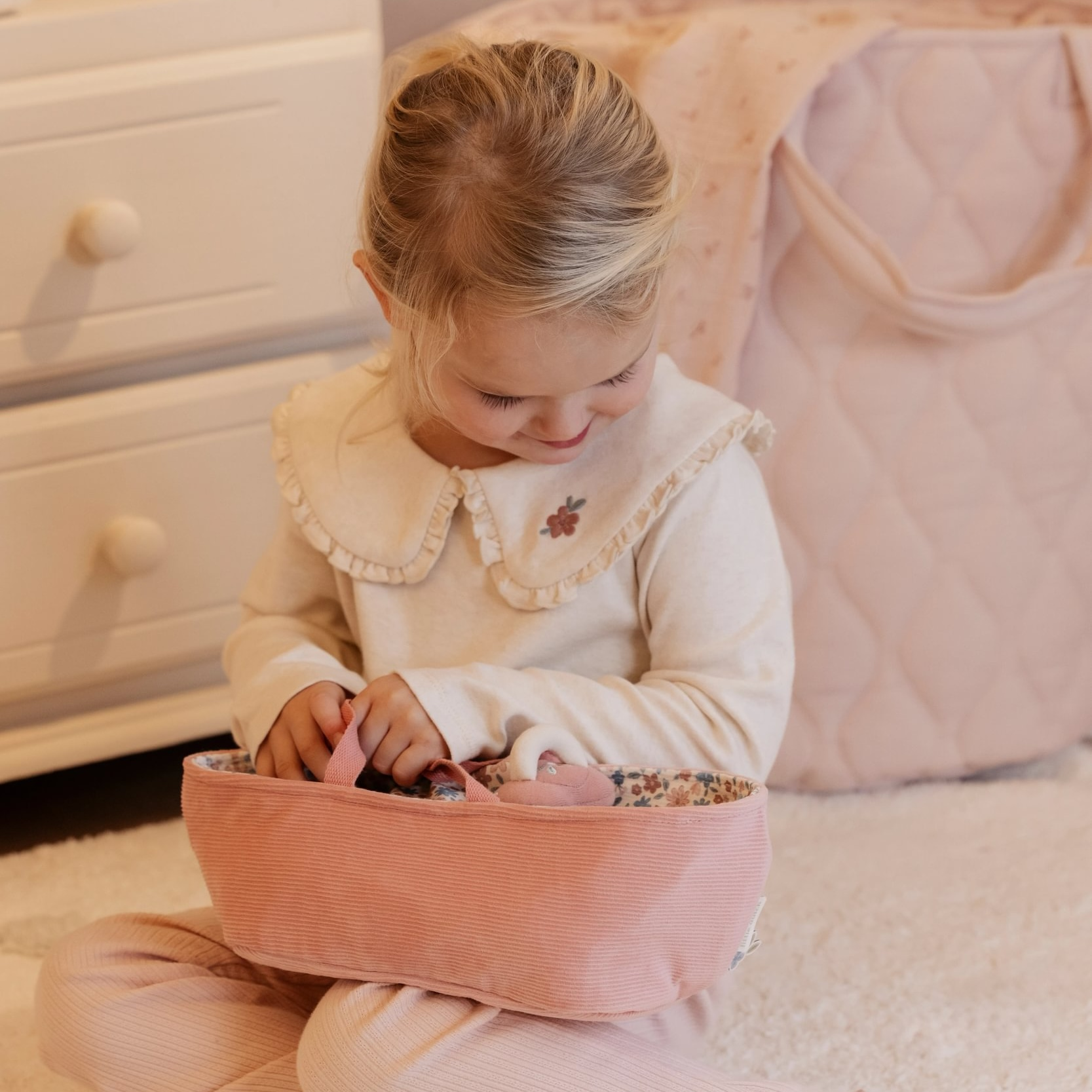 Nežná plyšová bábika Rosa sa chce maznať a túliť a vďaka praktickému košíku na spanie si ju môžete vziať kamkoľvek so sebou. Starostlivosť o také bábätko dá zabrať, a deti sa tak hravou formou učia zodpovednosti. Rosu treba pravidelne nakŕmiť alebo jej dať cumlík. Na spanie je potrebné Rosu uložiť do spacieho vaku a prikryť dekou, aby jej nebola zima.