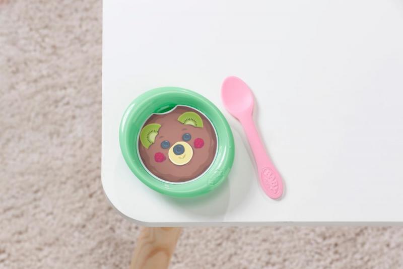 "Predstavujeme Jonasa! Bábiku Jonasa, známeho z animovaného seriálu BABY born, ktorý môžete sledovať na kanáli BABY born na Youtube, môžete mať teraz aj doma. V novom oblečení as 10 doplnkami. Prináša si so sebou aj kúzelný tanierik: keď do tanierika s bielou doštičkou vo vnútri dáte trochu vody, objaví sa na doštičke lahodné jedlo s roztomilou tvárou, ktoré z kŕmenia bábiky urobí ešte väčšiu zábavu. Keď Jonasa po nakŕmení (vodou) alebo po napití vody z fľaštičky posadíte na nočník a stlačíte mu bruško, objaví sa na doštičke v nočníku obrázok cikania a kakania. Keď sa Jonas napije vody z fľaštičky, môže roniť slzy a treba ho utíšiť. Pomôcť môže napríklad kúzelný cumlík: keď ho v pusinke otočíte o 180 stupňov, očká sa mu buď otvoria alebo zavrú. Otočte ešte raz a stane sa opak. Jonas ale dokáže ešte viac: má pohyblivé kĺby a môžete ho vziať aj do vane. Teraz dokonca uschne rýchlejšie, než kedykoľvek predtým: aby ste bábiku po hraní dobre vyčistili, je k tomu možné odňať jednu nohu a vytvoriť tým väčší otvor na čistenie bábiky. Voda tak z bábiky ľahšie odtečie. Pre ešte zaujímavejšiu hru si Jonas do svojho nového domova okrem fľaštičky, cumlíka, tanierika s doštičkou s obrázkom jedla a nočníka s doštičkou s obrázkom cikania a kakania prináša aj plienku, rodný list, hárok samolepiek a dva náramky priateľstva – jeden pre bábiku a jeden pre jeho malú maminku na dôkaz dlhého a laskyplného kamarátstva medzi dieťaťom a bábikou.. V kvalite BABY born, ktorá teší celé generácie detí už od roku 1991."