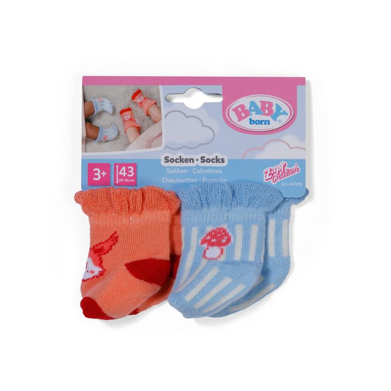 "Nohy pekne v teple je základ aj pre bábiku. Ponožky pre BABY born sú krásne mäkké a príjemné. A pretože sú aj krásne farebné, je to dvojnásobná výhra. Vyberať je možné z dvoch kombinácií. V prvej nájdete jedny ponožky ružové, ktoré sú ozdobené bielymi bodkami a ovečkou a druhé ponožky biele, na ktorých poletuje motýlik medzi ružovými obláčikmi. Druhá dvojica kombinuje oranžové ponožky s obrázkom lištičky a bielo-modré pruhované s muchotrávkou. Ponožky sa ľahko obliekajú a sú ideálne na kombinovanie so všetkými kúskami oblečenia BABY born. Vhodné pre bábiky veľkosti 43 cm. • Dva páry farebných ponožiek • Motív ovečky a motýlika alebo lištičky a muchotrávky • Vhodné pre bábiky veľkosti 43 cm • Roztomilý doplnok do šatníka bábik"