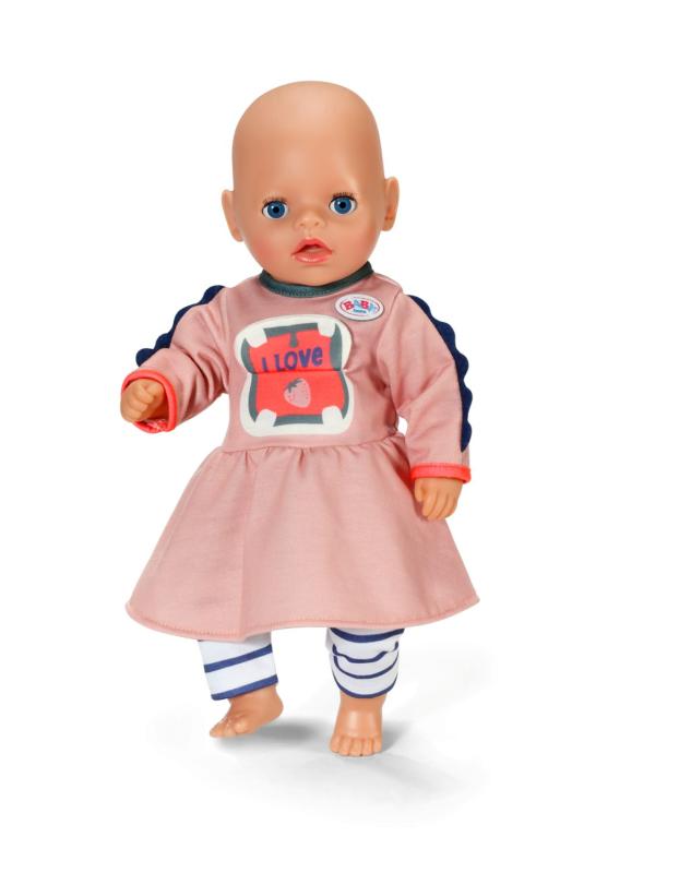 "Vitajte v džungli! Hrošík na šatách deťom okamžite zdvihne náladu. Roztomilé detaily na rukávoch spolu s modrými pruhovanými legínami perfektne dopĺňajú celý outfit. A to nie je všetko: Hrošík dokonca môže otvoriť ústa a má pre vás sladkú správu! • Sada šiat s motívom hrošíka a pruhovaných legín • S interaktívnym prvkom - otvárateľná pusa hrošíka • Vhodné pre bábiky veľkosti 36 cm • Súčasťou je ramienko z recyklovaného materiálu • Kvalitný doplnok pre rozšírenie kreatívnej a pestrej hry"