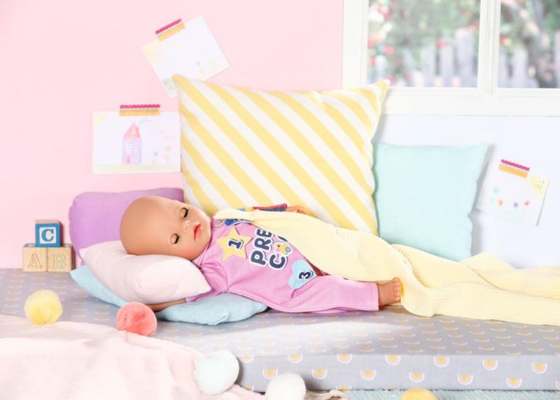 Tesne pred spaním sa deti z triedy Medvedíkov ešte hrajú na schovávačku. Preto má Malá sestrička na sebe ružové dupačky s kapucňou. Skvele sa totiž hodia ako na hranie, tak aj na spanie. Najprv sa ešte všetci dookola divoko naháňajú a schovávajú pod stolom alebo za stoličkami. Potom sa ale všetko upokojí a deti objavujú, čo je schované za nášivkami dupačiek Malej sestričky. Potom už ale zavrú oči a hrajú hru: „Keď ťa nevidím ja, ty ma tiež nevidíš“, pri ktorej všetci čoskoro zaspia. • Kvalitné oblečenie pre originálnu bábiku BABY born. • Pre radosť z nápaditej, rozmanitej a dlhotrvajúcej hry. • Štýl „easy fit“ pre ľahké prezliekanie. • Možno použiť pre všetky bábiky BABY born veľkosti 36 cm. BABY born Škôlka Dupačky s nášivkami pre bábiky veľkosti 36 cm.