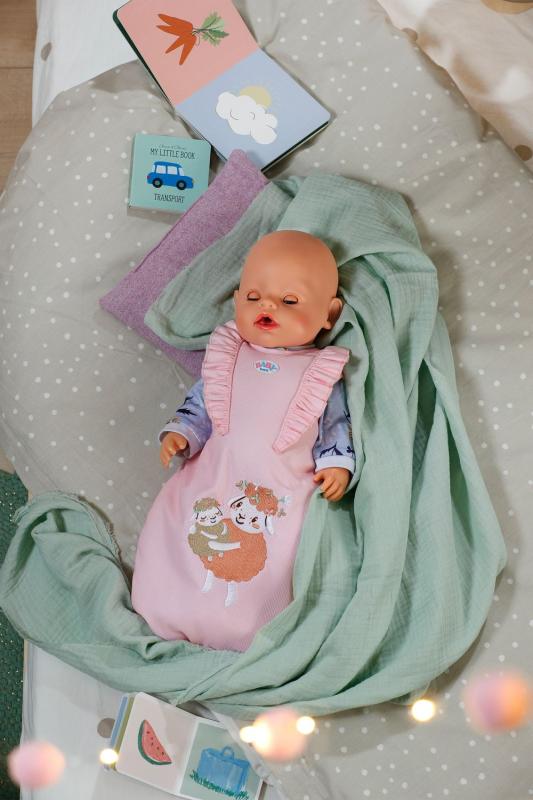 "Roztomilý spací vak pre bábiky v ružovej farbe zaisťuje pohodlné noci a sladké sny. Dizajn s hravými volánikmi a roztomilou výšivkou bábiku prenesie do sladkých snov. Praktické zapínanie na suchý zips na chrbte umožňuje ľahké obliekanie a vyzliekanie. Bábika je tak behom chvíľky pripravená na spánok. Vhodné pre bábiky veľkosti 36 cm a 43 cm. • Spací vak perfektný pre sladké sny v ružovej farbe • S hravými volánikmi a snovou výšivkou • Suchý zips na chrbte pre ľahké obliekanie a vyzliekanie • Vhodné pre bábiky veľkosti 36 cm a 43 cm • Jemné pastelové farby a elegantný dizajn"