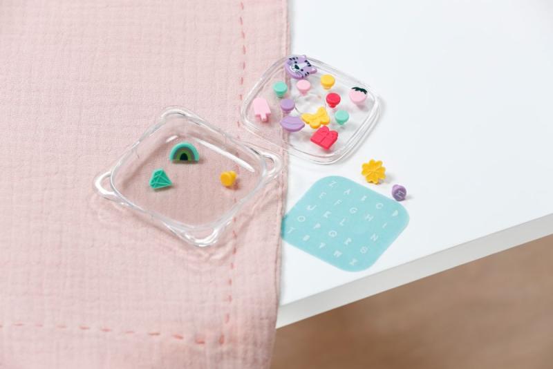 "BABY born Prebaľovacia taška s nacvakávacími ozdobami. • Obsahuje všetko pre starostlivosť o bábiku: plienku, dózu na púder a úložnú krabičku. • S nacvakávacími ozdobami: deti si môžu prebaľovaciu tašku prispôsobiť podľa svojej fantázie. • Podporuje „hranie sa na“ a rozvoj starostlivosti o druhých. • Ideálne na cesty aj domov. • Pre bábiky veľkosti 36 cm a 43 cm. • Kvalitný doplnok pre radosť z nápaditej, rozmanitej a dlhotrvajúcej hry."