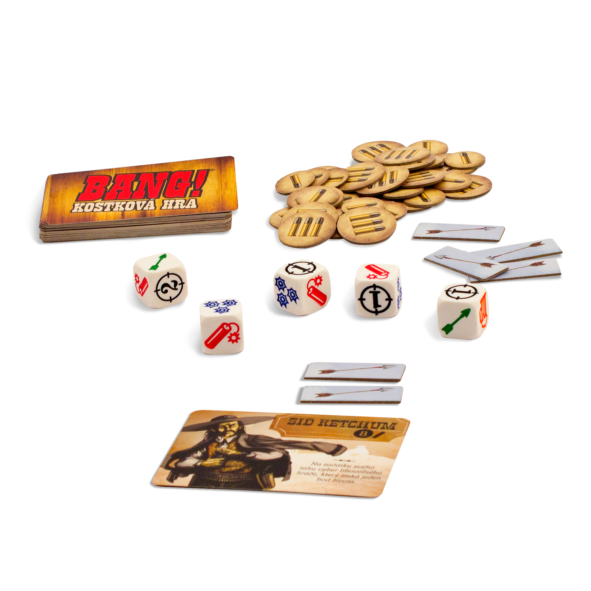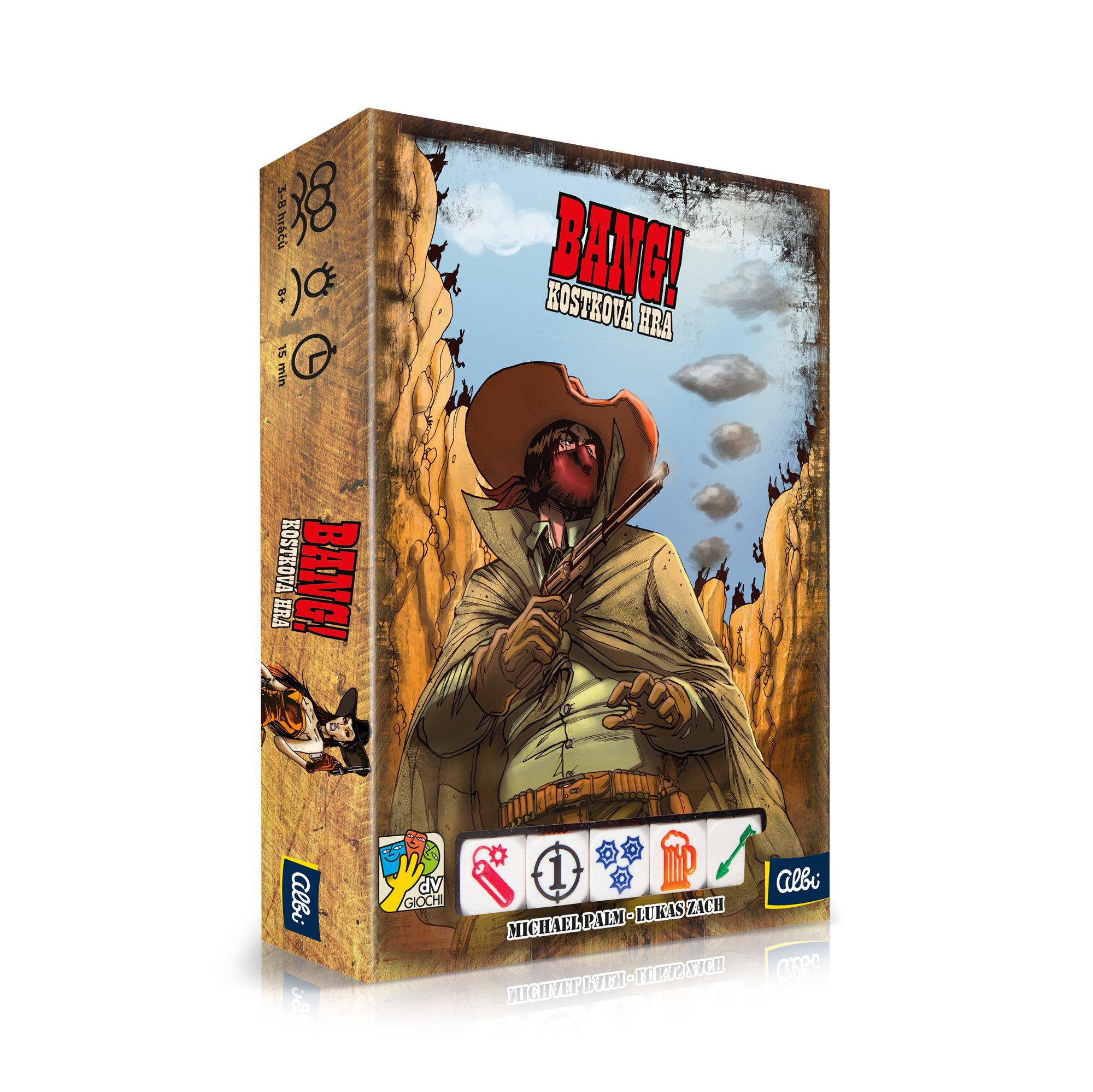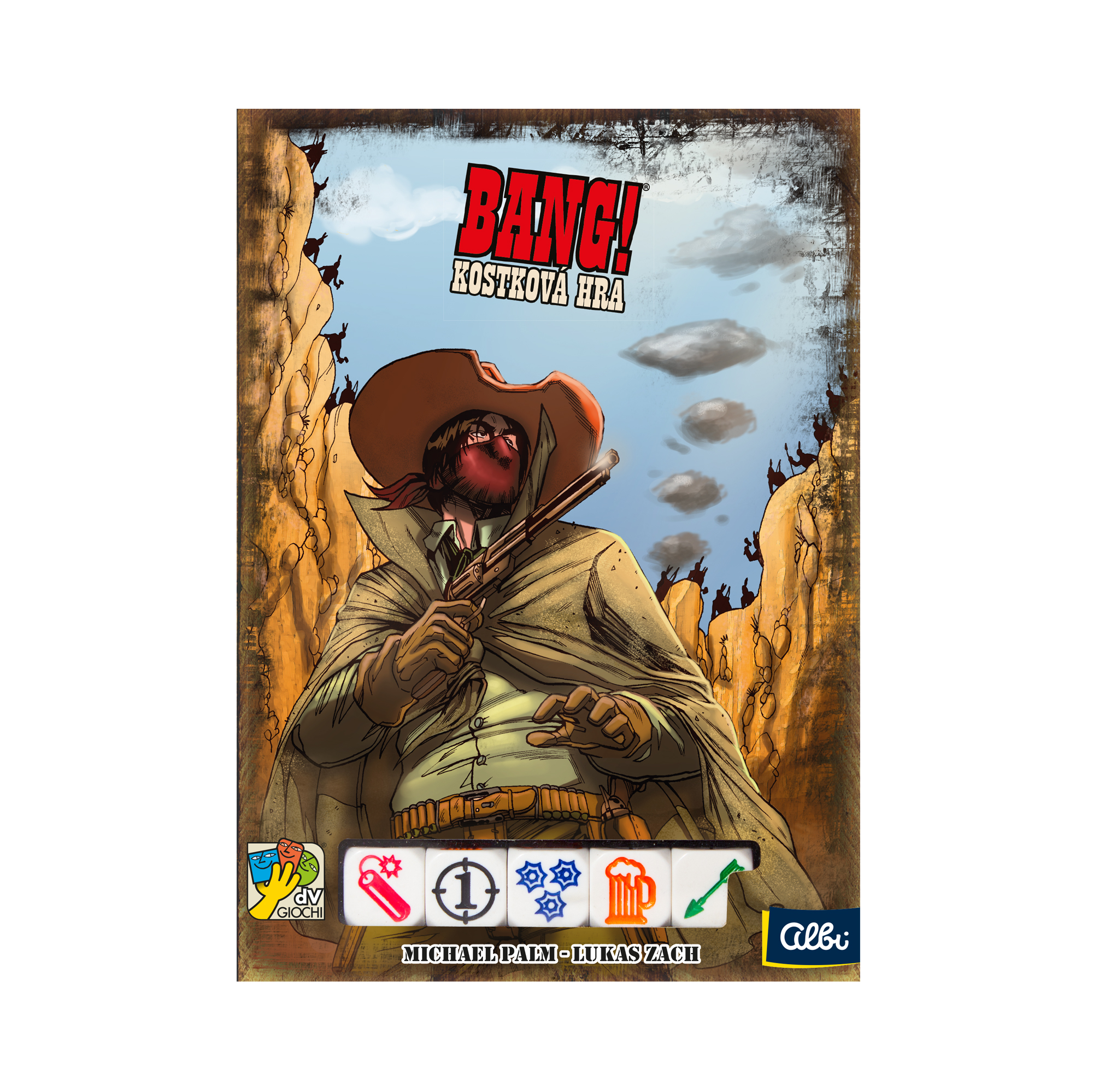 Bang! Kocková hra Na Divokom západe neustále zúri nekonečný boj medzi zákonom a banditmi. Náhle oblohu zatienil dážď letiacich šípov: Indiáni útočia! Si dosť statočný na to, aby si sa ubránil Indiánom? Máš odvahu vziať osud do svojich rúk? Ukáž svoju udatnosť a postav sa všetkým nástrahám Divokého západu! Kto vyjde z kockovej prestrelky víťazne? Bang! Kockové hra kombinuje princípy kartovej hry Bang! S kockovou hrou, kde výsledky kociek využívate pre rôzne akcie, streľba, liečenie životov, streľba z guľometu, atď.
