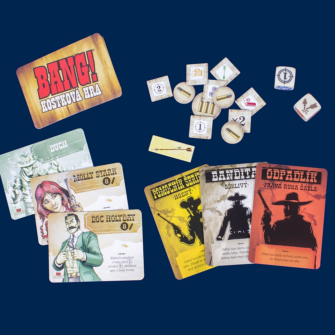 Old Saloon je prvým rozšírením pre kockovú hru Bang!. Do hry pridáva hneď päticu modulov, ktoré môžete navzájom kombinovať a ozvláštniť si s ich pomocou partie kockovej hry Bang! Pre hranie je nutné vlastniť základnú kockovú hru Bang!. Priebeh hry sa podobá základnému variantu kockovej hry Bang!, ale s niekoľkými obmenami, v ktorých prijdu k slovu nové kocky, špeciálne roly a nové postavy. Hra Bang! Old Saloon obsahuje: 2 kocky saloonu, 22 kariet, 7 žetónov pre ducha, žetón šípu indiánskeho náčelníka, body života a pravidlá v slovenčine a češtine. Poznámka: Neodporúčame miešať rozšírenia Old Saloon a Nemrtví alebo živí dohromady, ale hrať ich vždy samostatne. Každé rozšírenie je vyvinuté k hraniu iba so základnou hrou, aby si hráči naplno užili špeciálne elementy a vznuté herné situácie. Rozšírenia je možné hrať dohromady, ale veľmi to ovplyvňuje hernú dynamiku a výrazne predlžuje hraciu dobu.