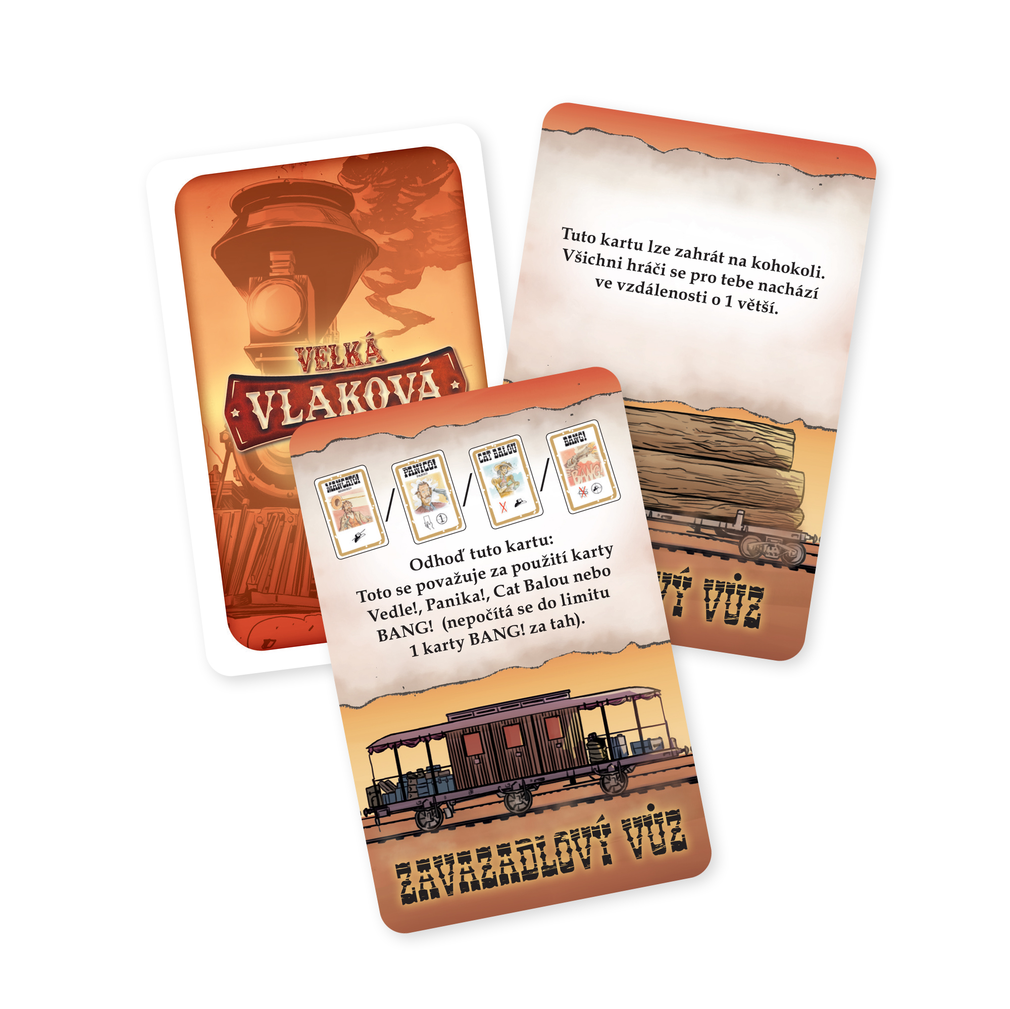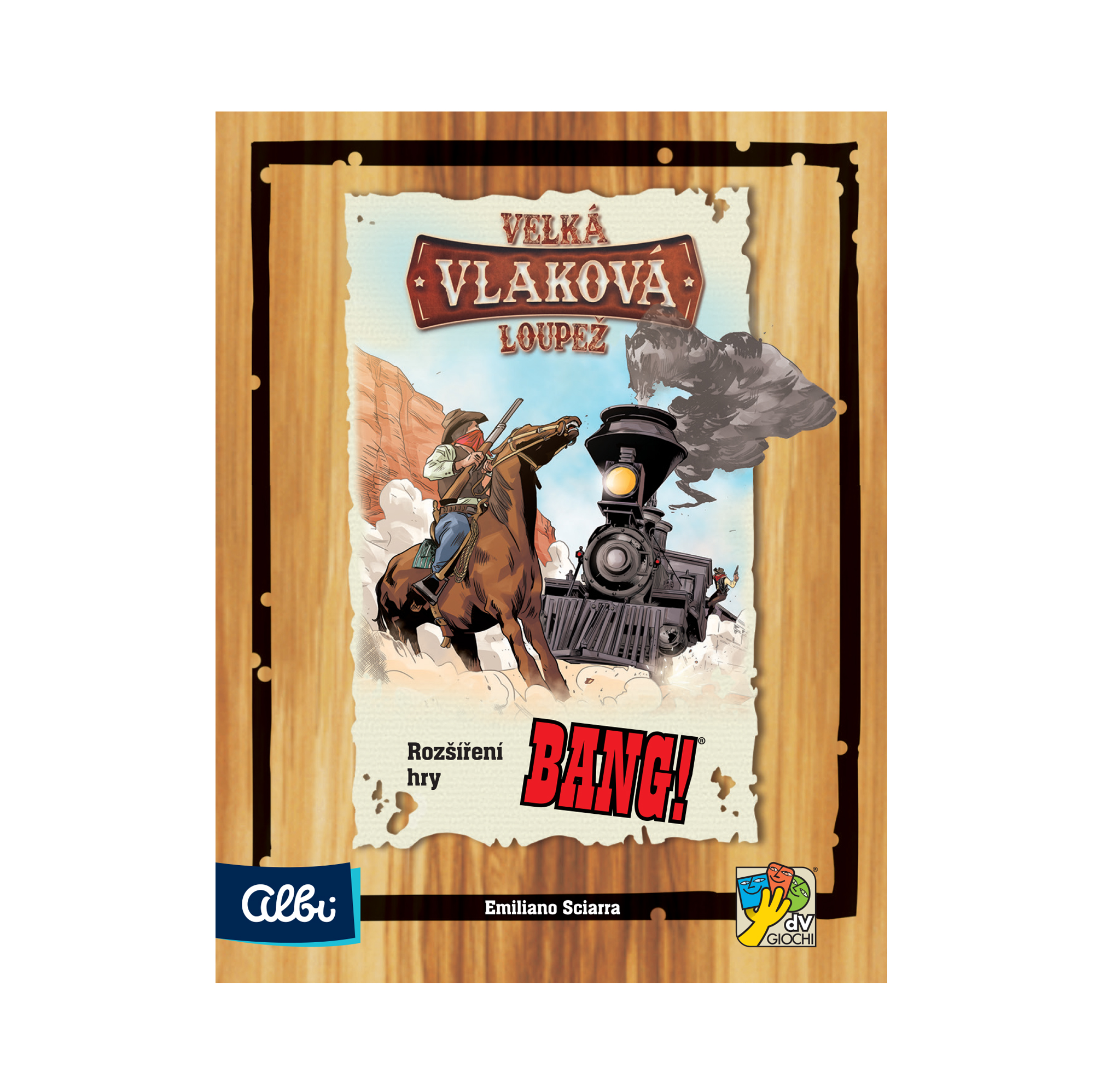 Nastupovať! Do mesta prichádza vlak a banditi si brúsia zuby na jeho cenný náklad! Strážcovia zákona na nich však čakajú a sú pripravení brániť vagóny, akonáhle súprava zastaví v stanici. Láka vás možnosť vlak vylúpiť, alebo naopak využijete vagóny k tomu, aby ste dopadli hľadaných darebákov? Rozšírenie BANG! Veľká vlaková lúpež vzniklo na základe návrhov českých a slovenských hráčov. Pridáva k hre nový herný prvok v podobe vlaku, kde môžete získať zaujímavé výhody. V krabičke taktiež nájdete nové postavy a karty do hry. Rozšírenie obsahuje 17 kariet vlaku, 14 kariet staníc, 9 postáv, 16 hracích kariet a pravidlá. Nemožno hrať samostatne bez základnej hry BANG! Jedná sa o rozšírenie základnej hry!