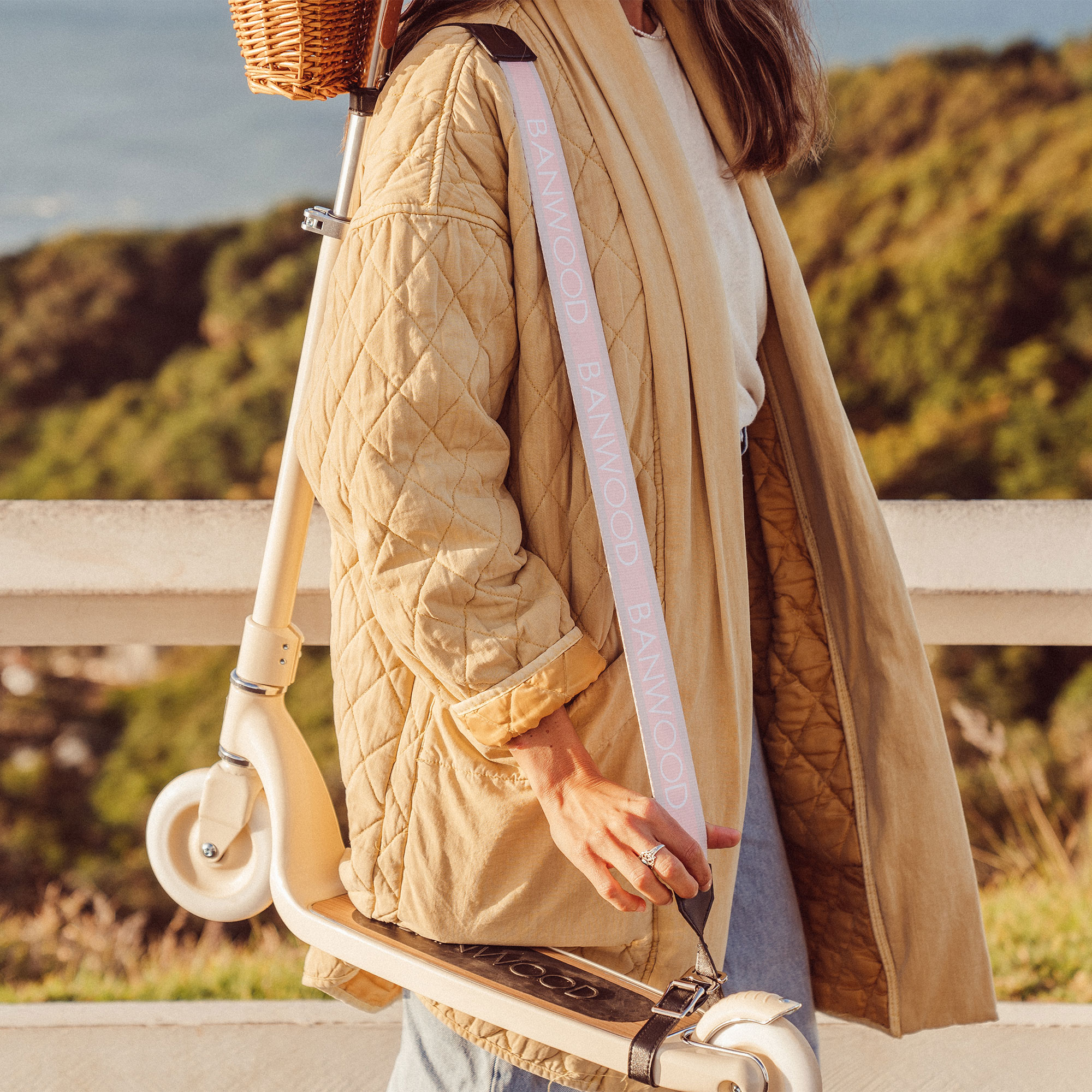 Víziou Banwood je pozitívne ovplyvňovať aktívny životný štýl detí od útleho veku. Banwood ponúka štýlové produkty v nadčasovom minimalistickom dizajne a vysokej kvalite, ktoré pomáhajú rozvíjať osobnosť detí a vytvárať spomienky na detstvo plné radosti. Milujeme spôsob, akým sa deti hrajú! Banwood popruh je štýlový a praktický módny doplnok, ktorý poslúži keď treba po celodennom dobrodružstve odľahčiť náklad po ceste domov. Popruh má dvojitý klip, ktorý sa ľahko používa v kombinácii s kolobežkami, trojkolkami aj odrážadlami. Dá sa využiť aj vtedy, keď treba vášmu drobcovi pomôcť udržiavať rovnováhu alebo potiahnuť ho vpred. Dĺžka popruhu 120 cm. Kovové zapínanie. Materiál popruhu: pevná látka Dacron. Konce popruhu z vegánskej kože. Môže byť pripojený na odrážadlo alebo kolobežku.