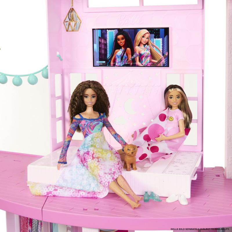 Deti môžu usporiadať dokonalú párty pri bazéne s Barbie® Domom snov™! Tento luxusný dom pre bábiky má najvyššiu šmykľavku v doterajšej sérii domov Barbie® a trojposchodovú špirálovú konštrukciu pre nekonečnú zábavu na slnku. Inšpiruje na hranie v rozsahu 360 stupňov vďaka širokému a priestrannému pôdorysu, trom podlažiam a 10 vnútorným a vonkajším obytným priestorom. Herný set obsahuje tiež viac prvkov pre domácich miláčikov ako kedykoľvek predtým, vrátane šmykľavky pre šteňatá a bazéna, kde sa chlpatí kamaráti môžu hrať spolu s bábikou Barbie®! Extra miestnosť na hornom poschodí sa premení na spaciu izbu, vďaka ktorej sa v Dome snov™ môžu vyspať štyri bábiky (bábiky Barbie® nie sú súčasťou balenia). S viac ako 75 doplnkami a prispôsobiteľnými priestormi, je výnimočným darčekom pre deti od 3 rokov. Farby a vzhľad výrobku sa môžu líšiť.
