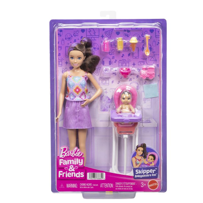 Mattel Barbie SKIPPER BABYSITTER pestúnka s jedálnou stoličkou