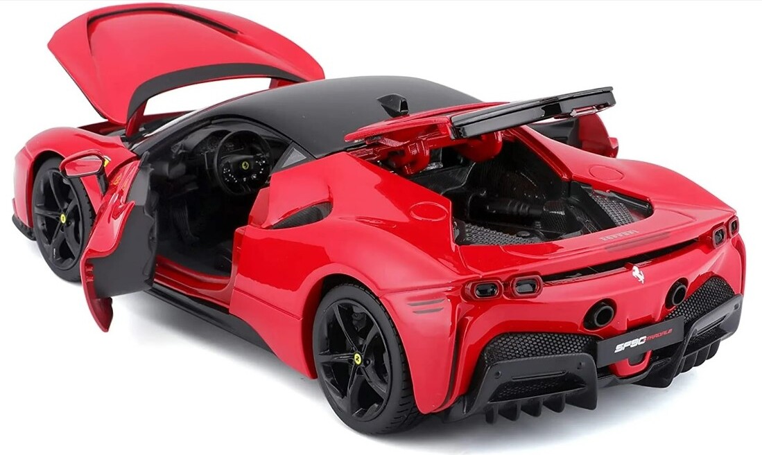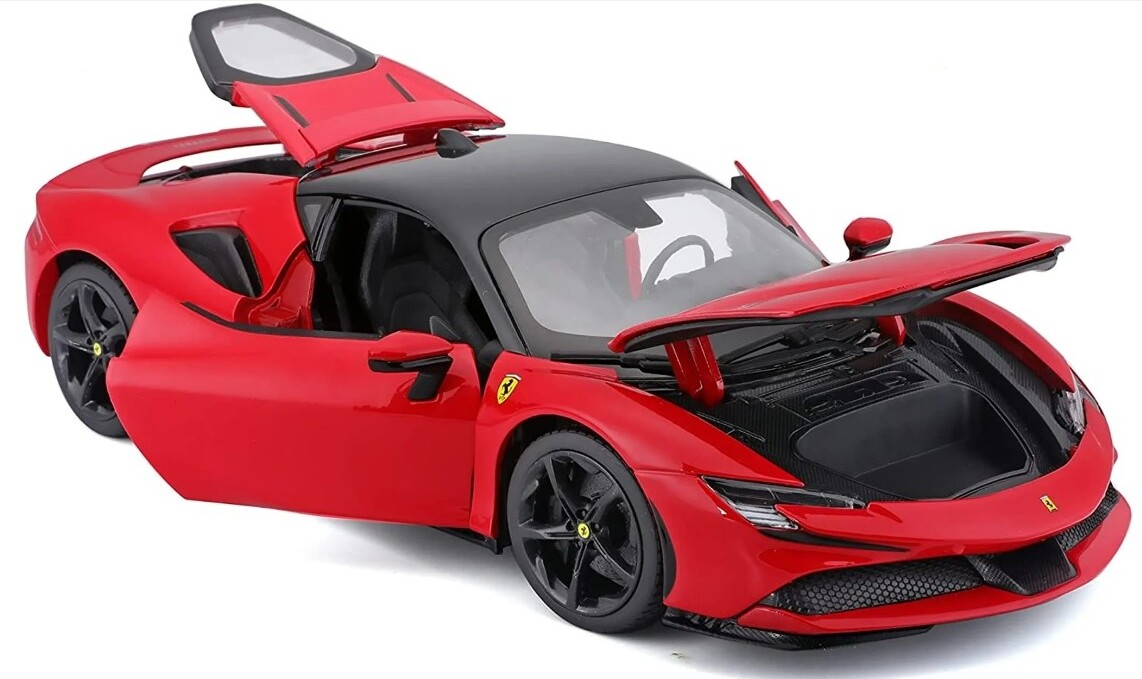 Kovový model auta 1:18 Ferrari SF90 Stradale Red pre zberateľov. Má otváraciu kapotu a dvere, natáčanie kolies volantom je plne funkčné. Farba modelu podľa obrázku. Model má otváraciu kapotu a dvere, natáčanie kolies volantom je plne funkčné Karoséria je vyrobená zo zinkohliníkovej zliatiny Karoséria je potlačená tampónovou tlačou kvalitnou farbou Veľké množstvo detailov Detailne spracované svetlá a smerovky Gumené pneumatiky Pre deti od 3 rokov