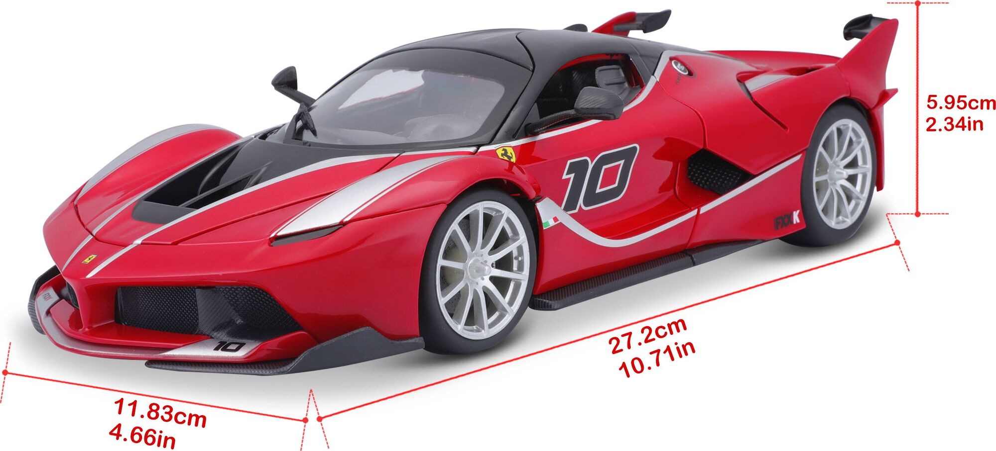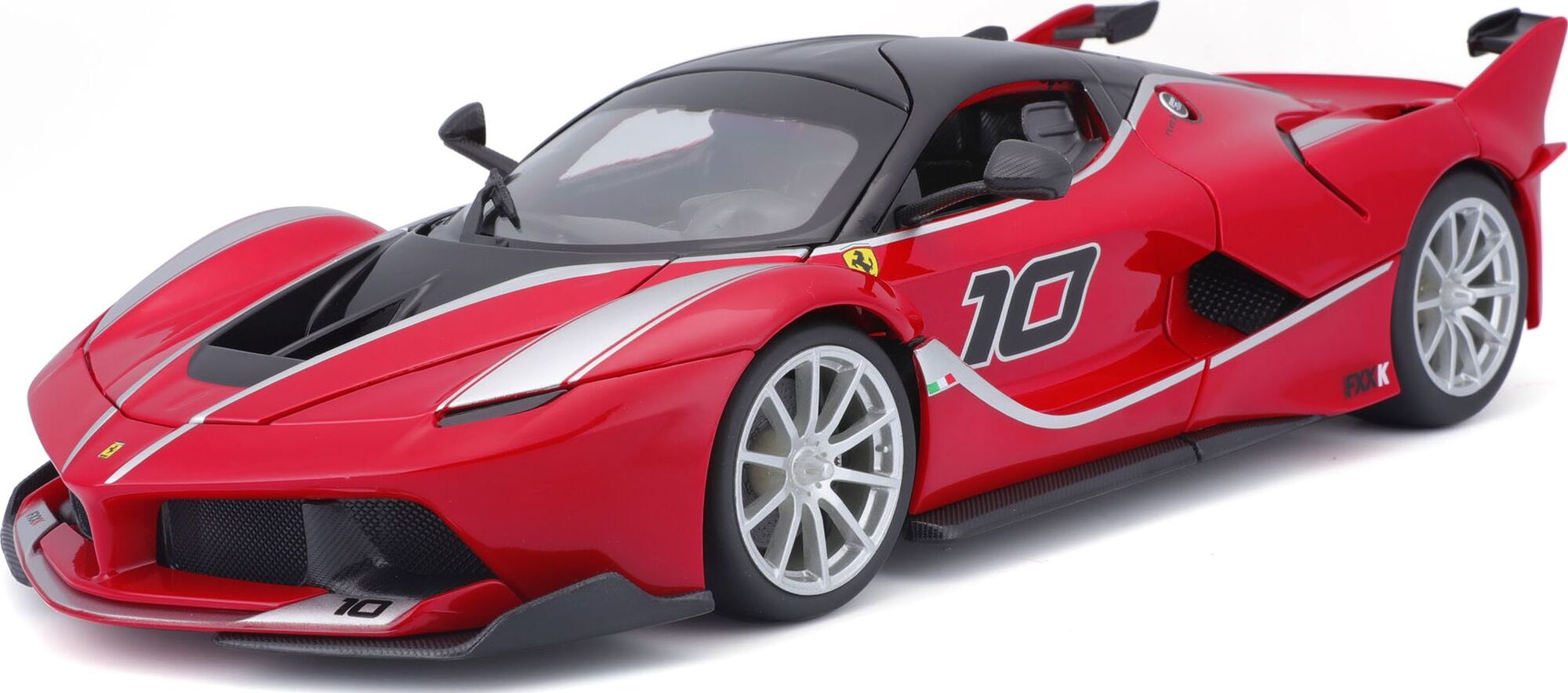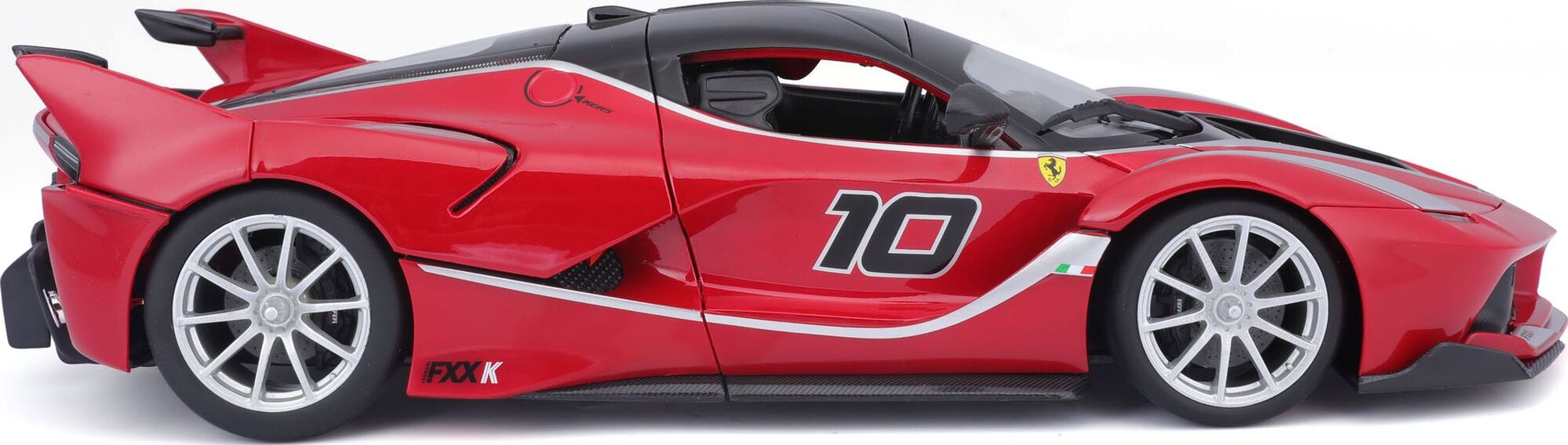 Bburago 1:18 Ferrari TOP FXX-K, výrobca Bburago. Špičkový model auta LaFerrari v mierke 1:18. Model má otváracie dvere a obe kapoty Volant je funkčný Zavesenie všetkých kolies Detailné vypracovanie interiéru Prvotriedna kvalita farbenia Detailné vypracovanie podvozku so samostaným výfukovým systémom Vysoká detailnosť kolies a emblémov Špeciálna zberateľská krabička Pre deti od 3 rokov