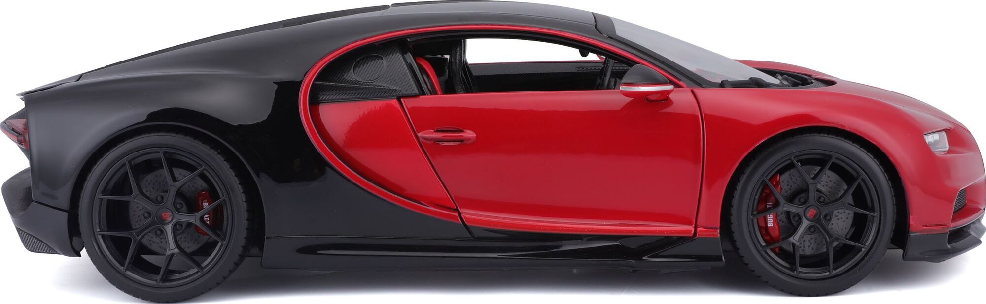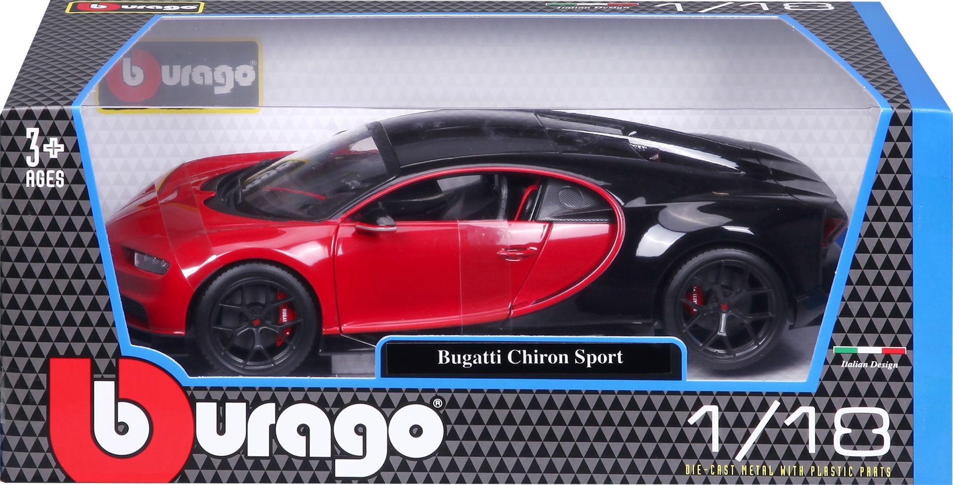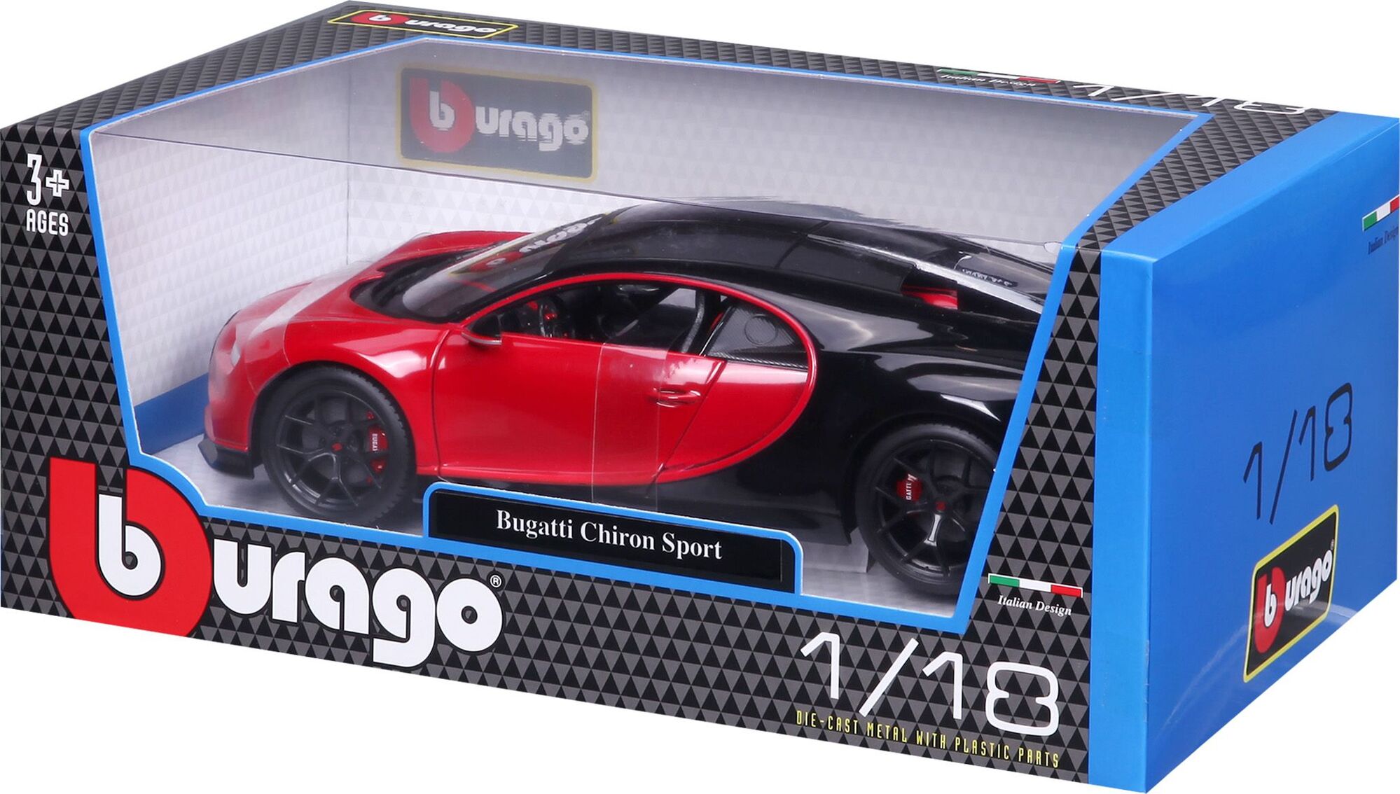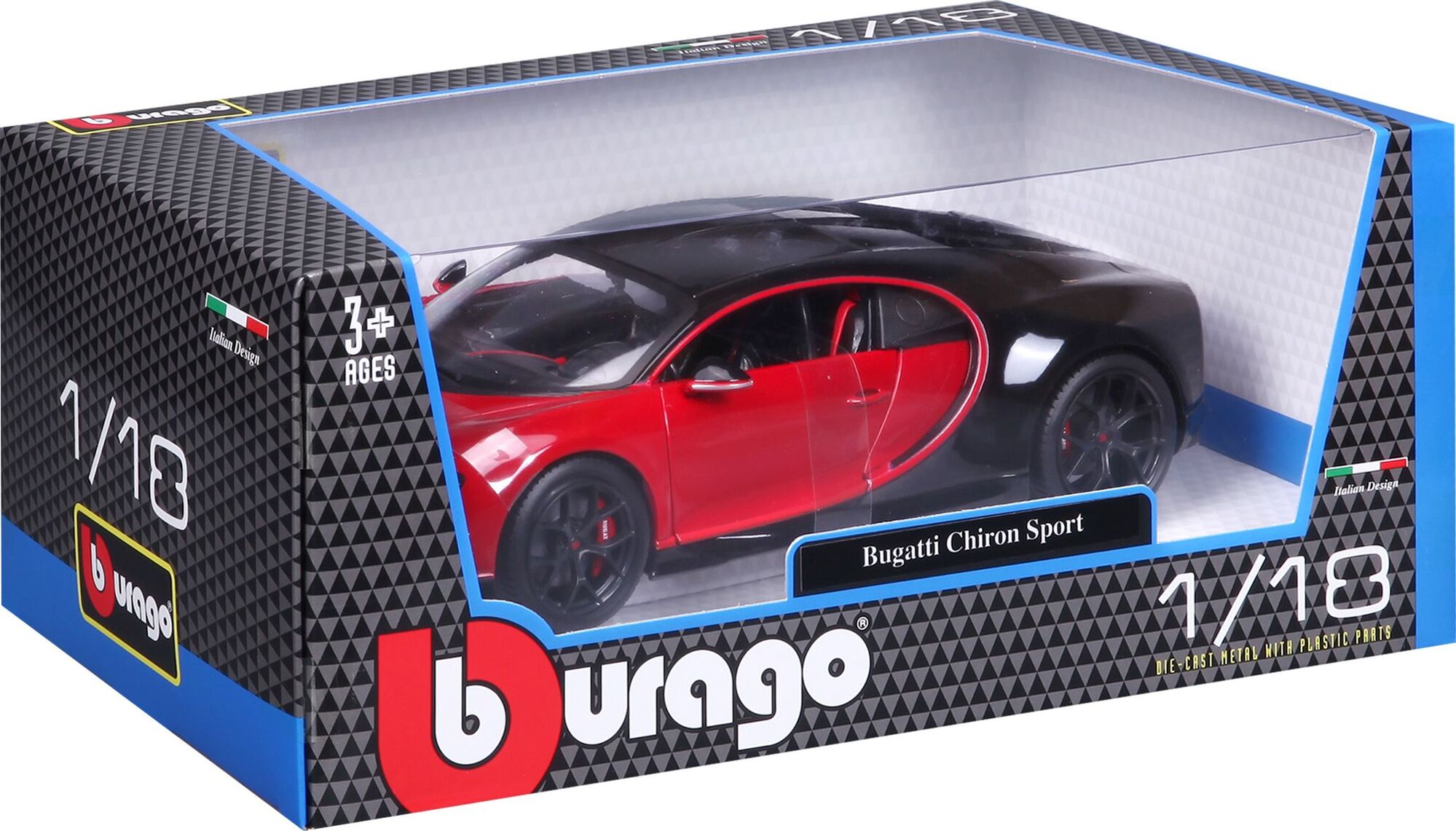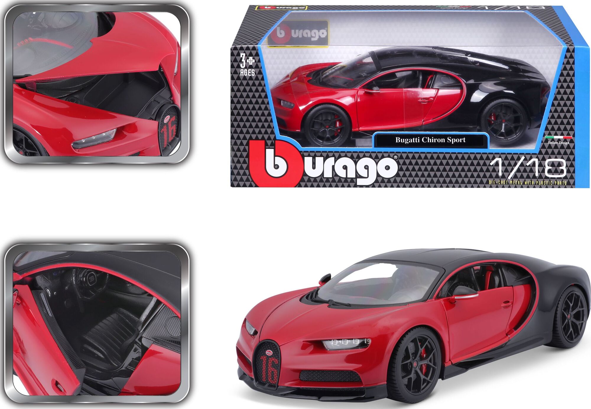 Bburago 1:18 Bugatti Chiron Sport (red) Model auta v mierke 1:18 vyrobený z kovových a plastových dielov.Balené v papierovej škatuľke s fóliovým priehľadom a popisom typu.Otváracie dvere, predná kapota, výsuvný spojler a natáčacie kolesá.Dĺžka modelu cca 25 cm.