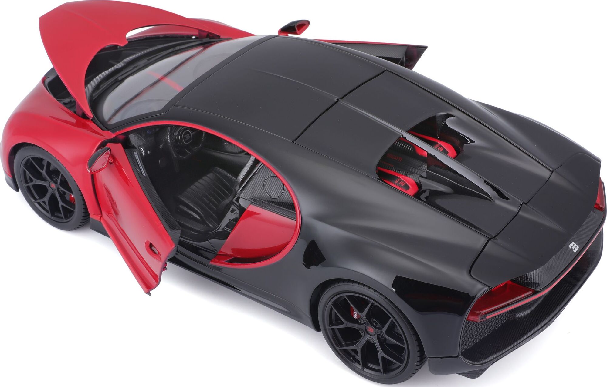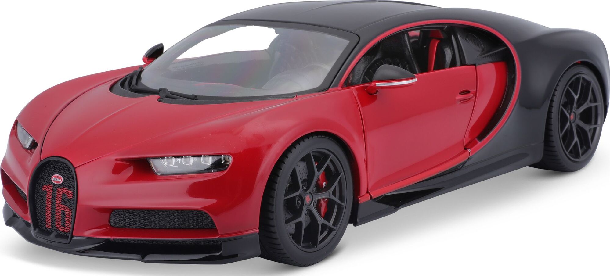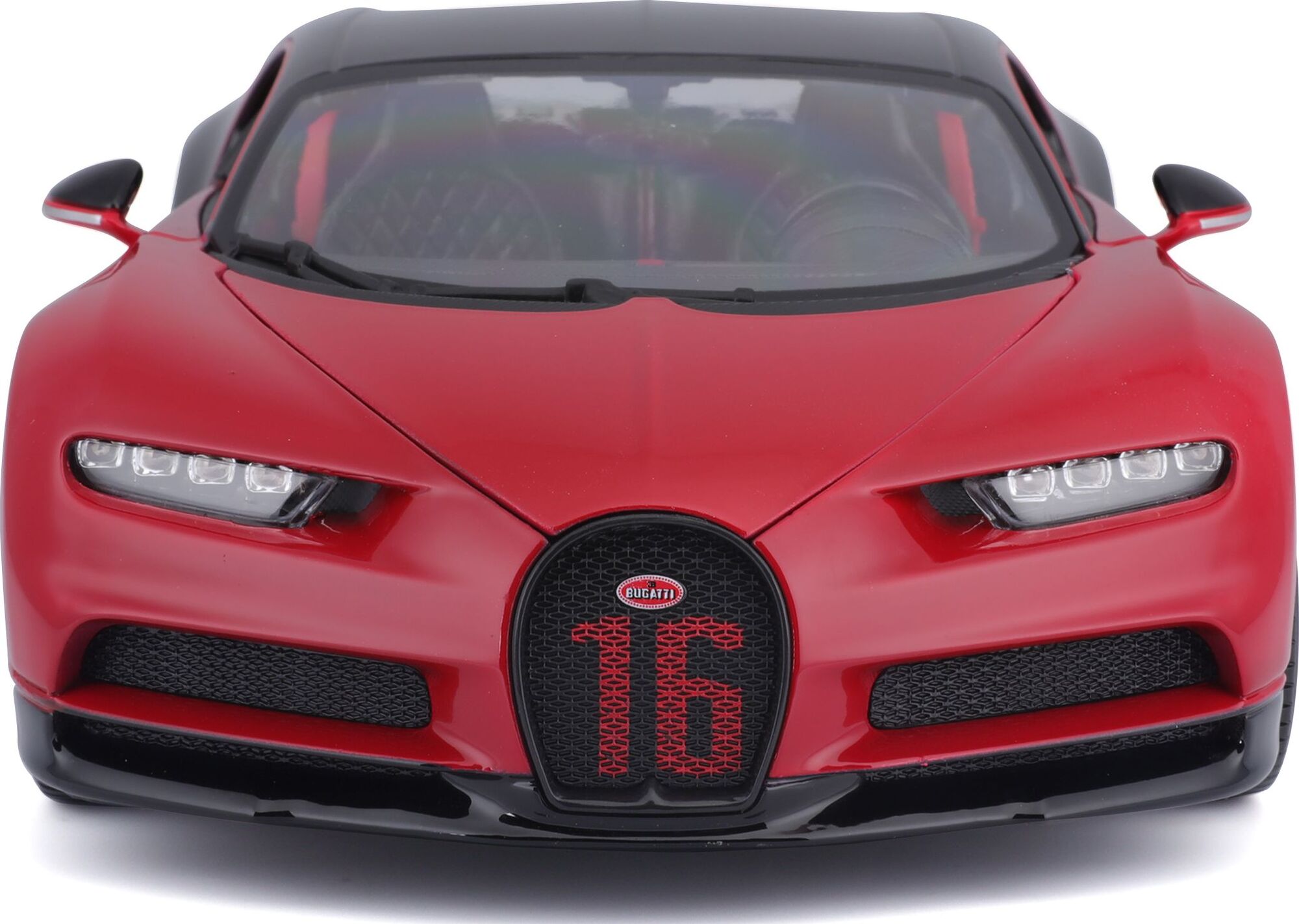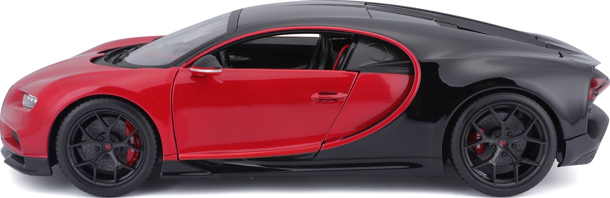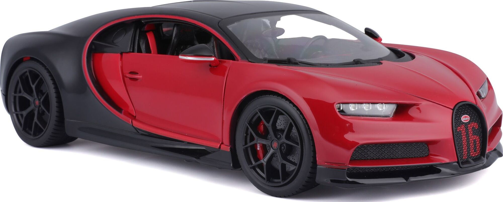 Bburago 1:18 Bugatti Chiron Sport (red) Model auta v mierke 1:18 vyrobený z kovových a plastových dielov.Balené v papierovej škatuľke s fóliovým priehľadom a popisom typu.Otváracie dvere, predná kapota, výsuvný spojler a natáčacie kolesá.Dĺžka modelu cca 25 cm.