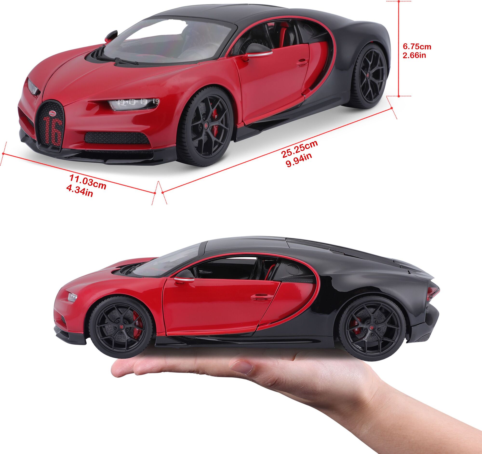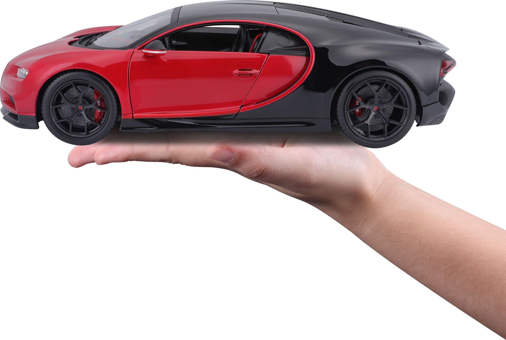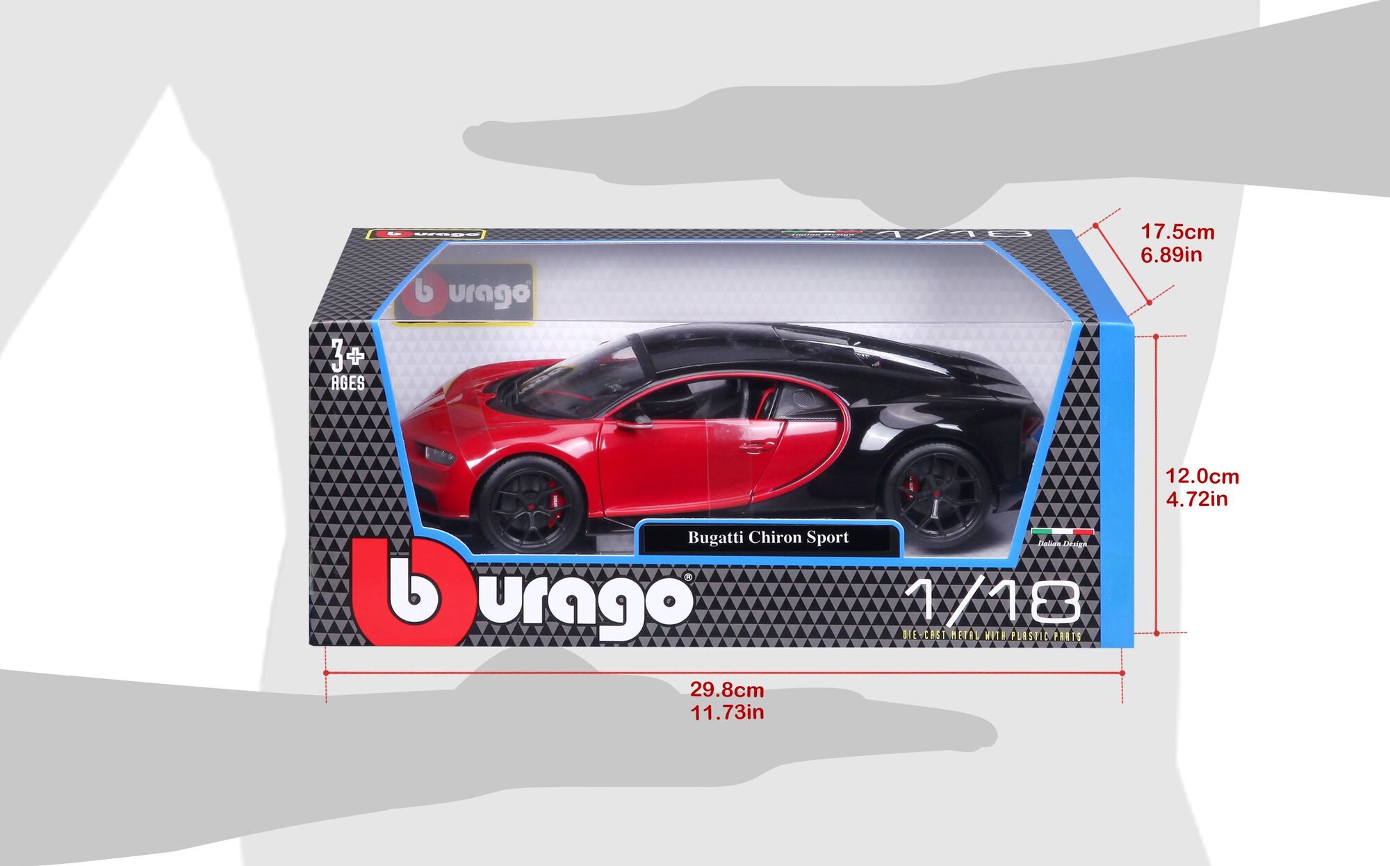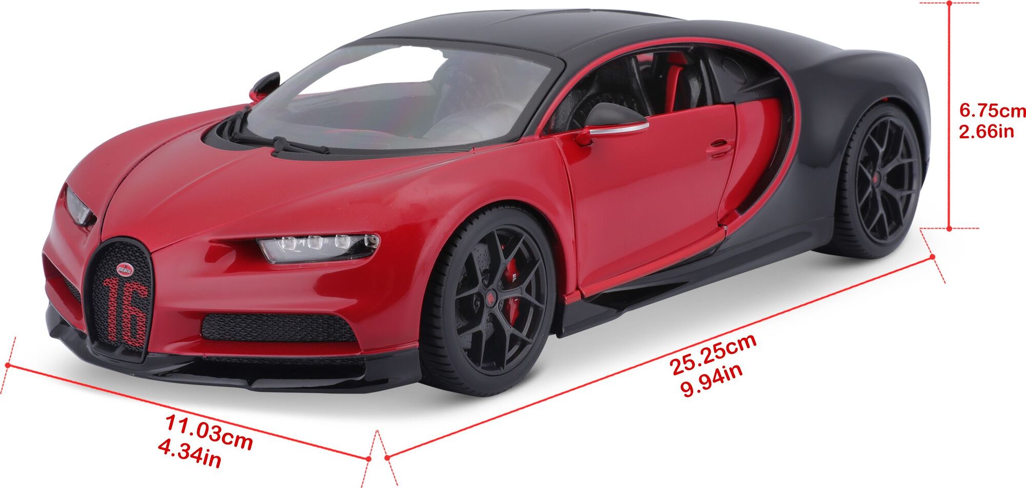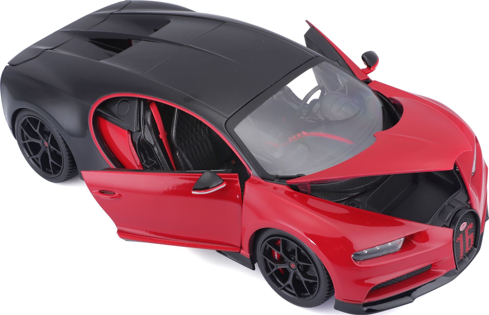 Bburago 1:18 Bugatti Chiron Sport (red) Model auta v mierke 1:18 vyrobený z kovových a plastových dielov.Balené v papierovej škatuľke s fóliovým priehľadom a popisom typu.Otváracie dvere, predná kapota, výsuvný spojler a natáčacie kolesá.Dĺžka modelu cca 25 cm.