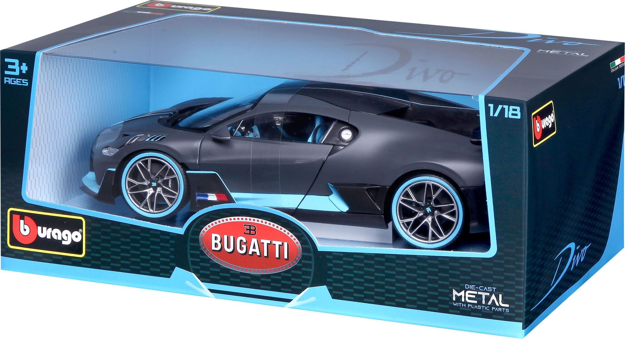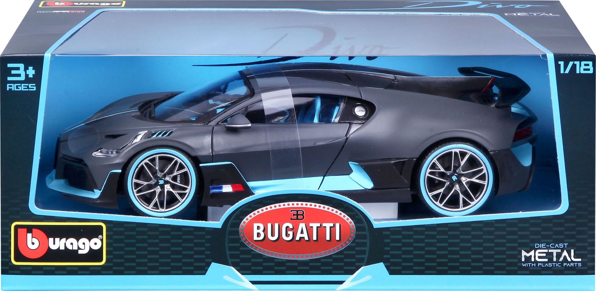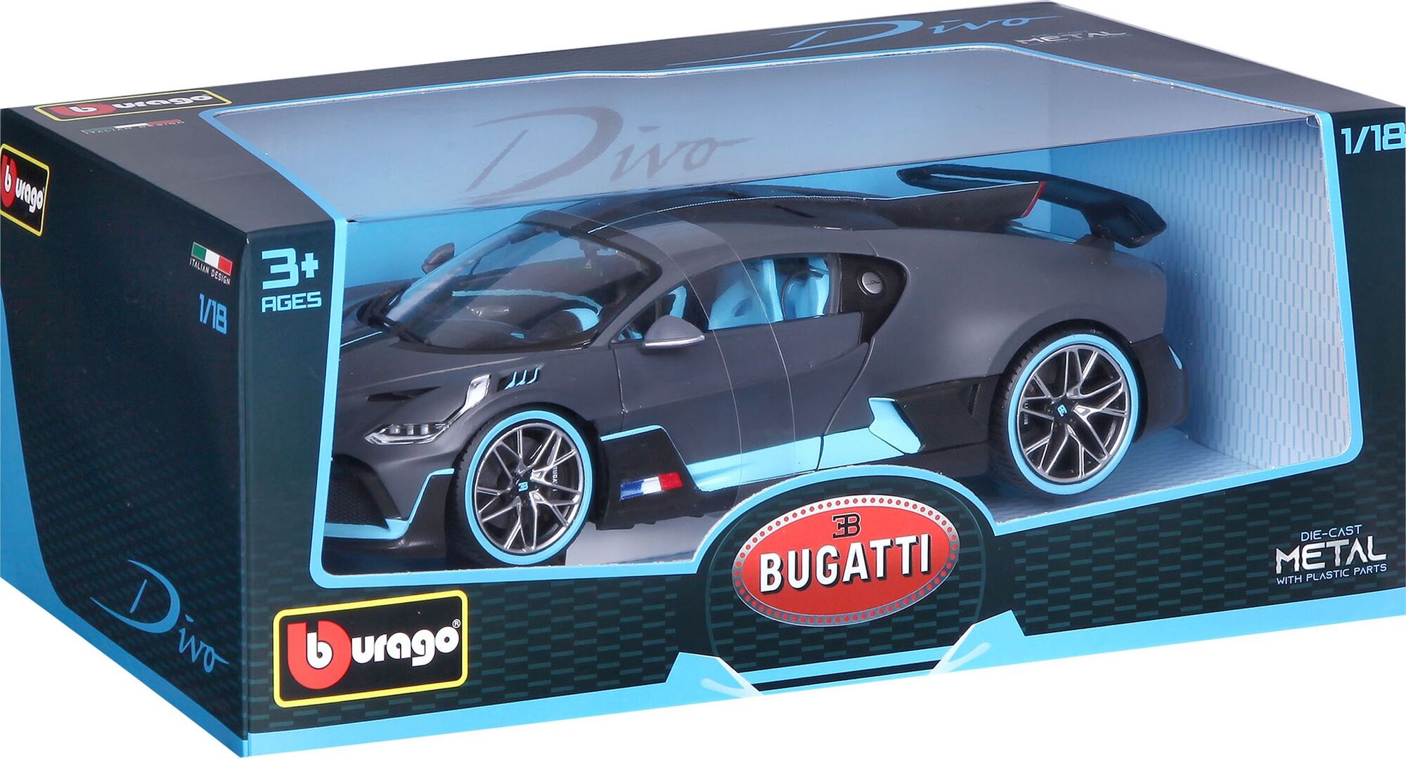 Bburago 1:18 Bugatti Divo Model auta v mierke 1:18 vyrobený z kovových a plastových dielov.Balené v papierovej škatuľke s fóliovým priehľadom a popisom typu.Otváracie a natáčacie kolesá.