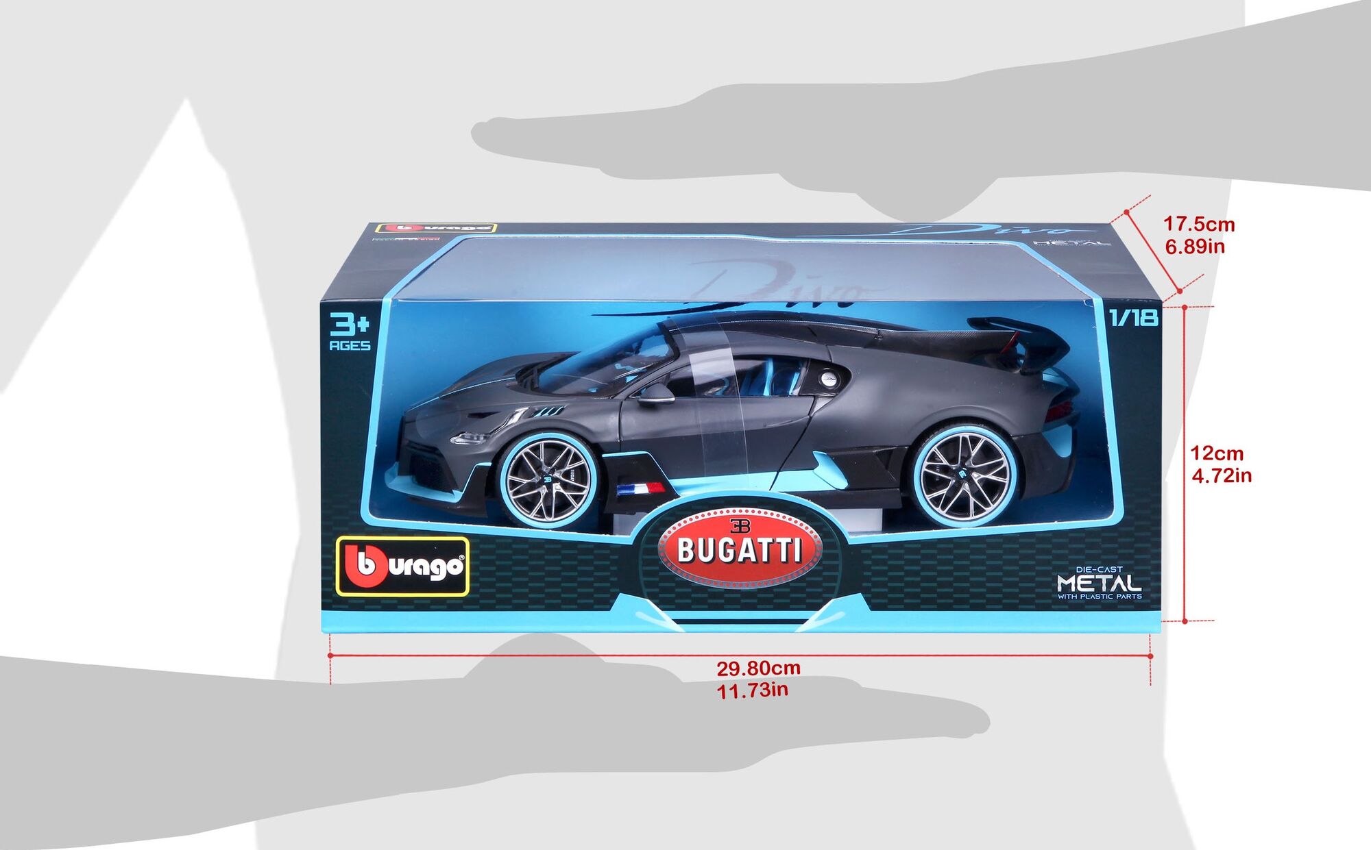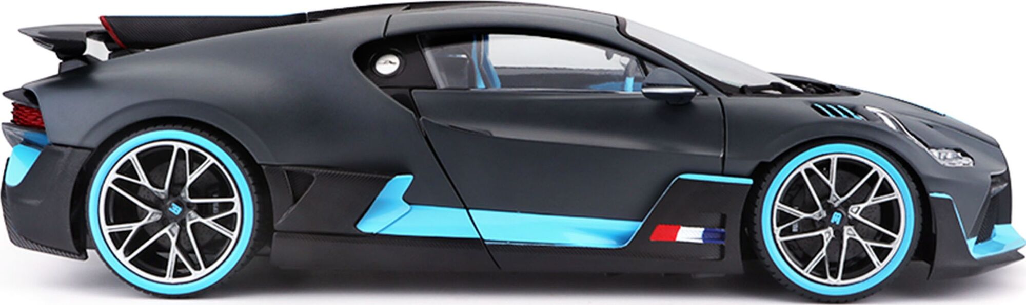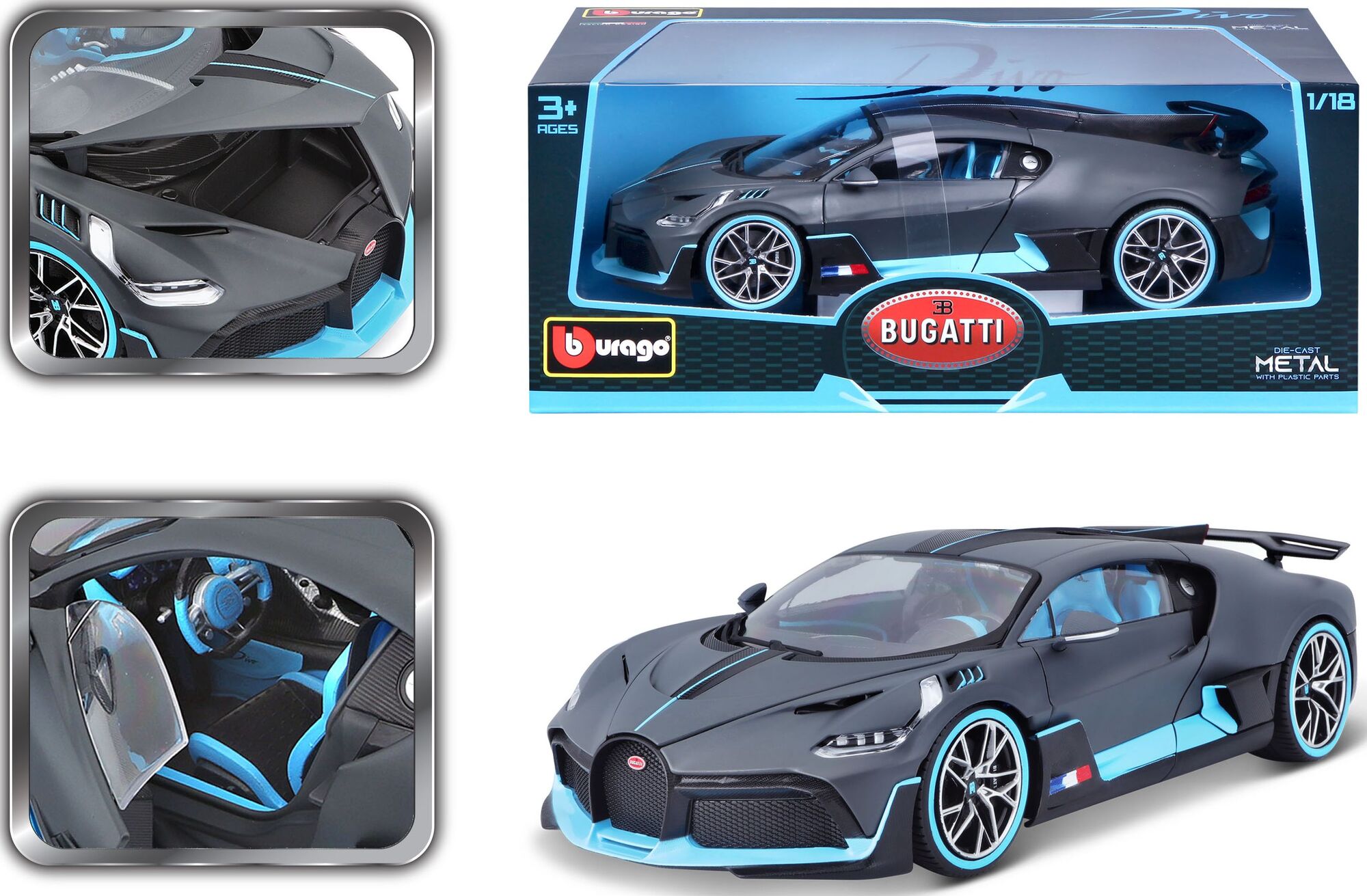 Bburago 1:18 Bugatti Divo Model auta v mierke 1:18 vyrobený z kovových a plastových dielov.Balené v papierovej škatuľke s fóliovým priehľadom a popisom typu.Otváracie a natáčacie kolesá.