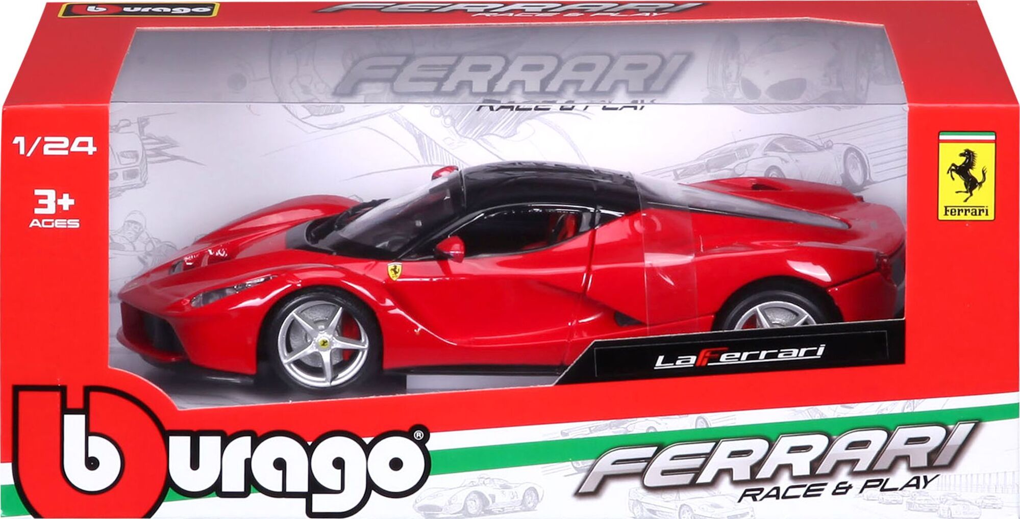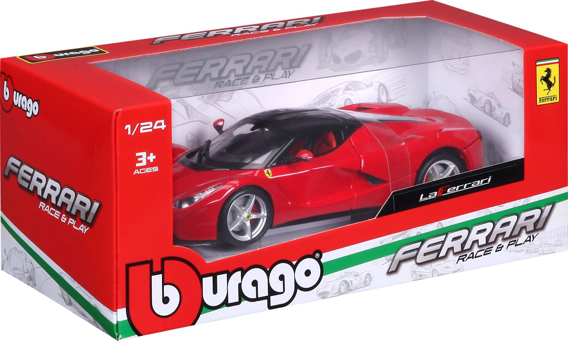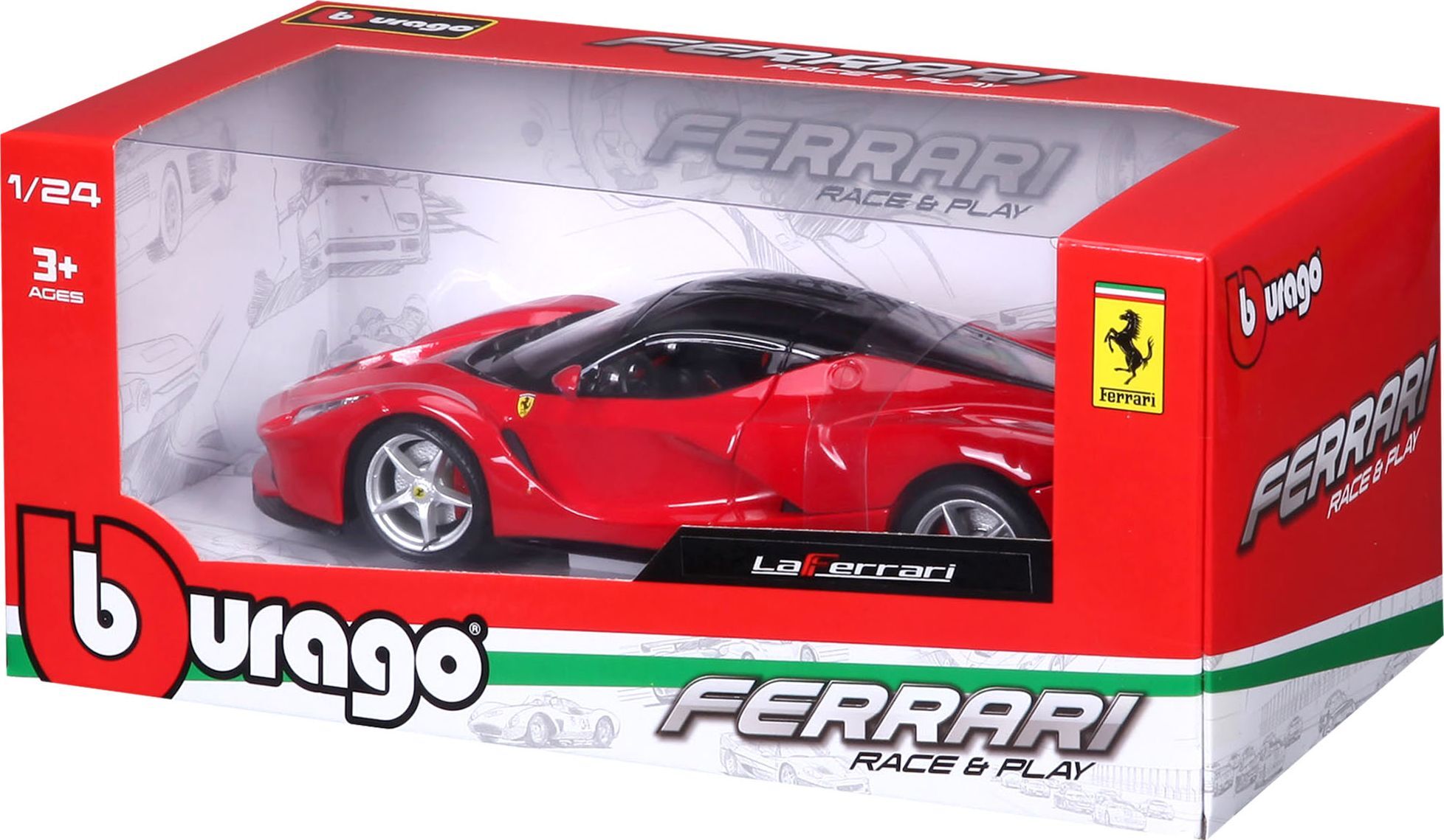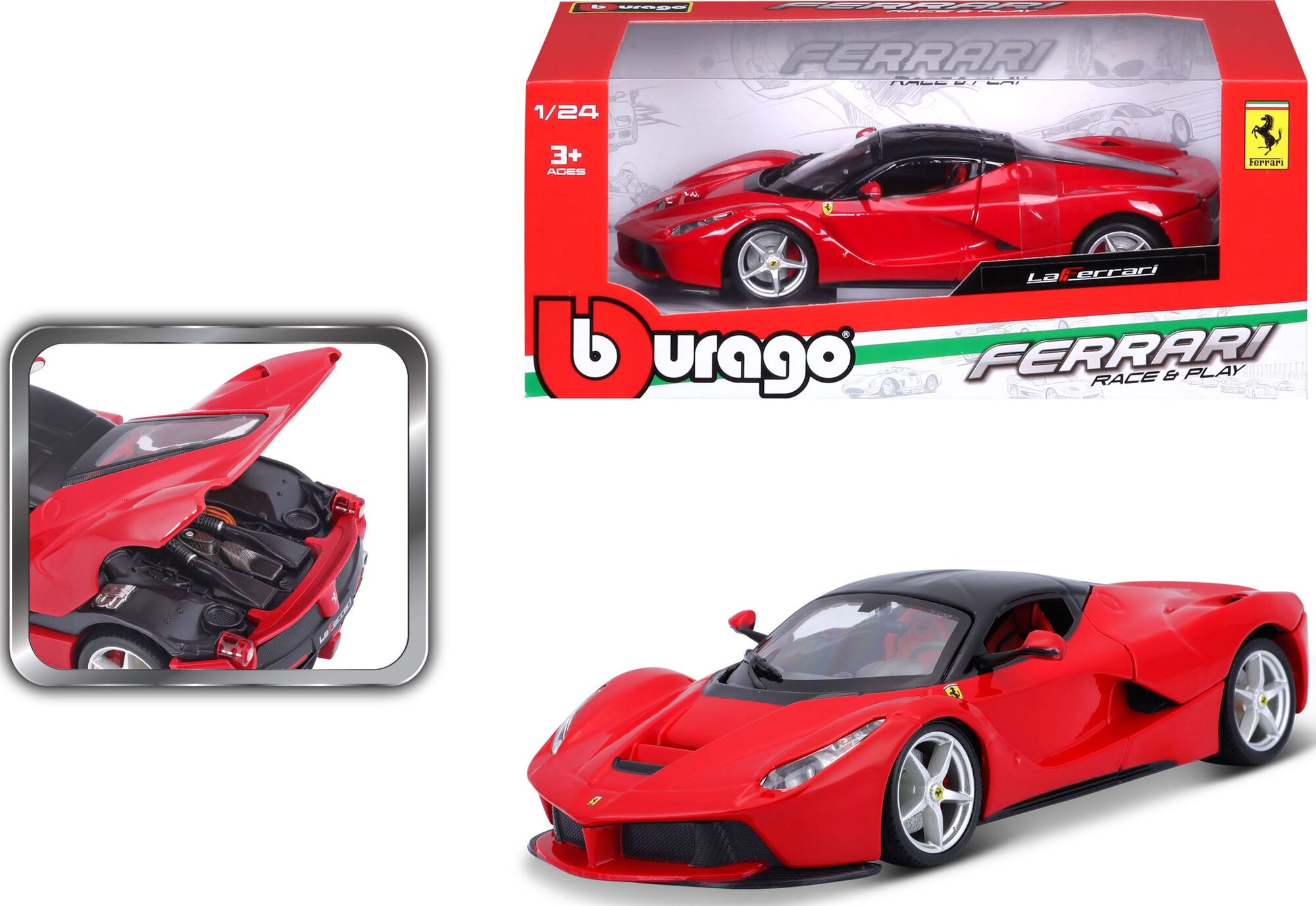 Bburago La Ferrari 1:24, výrobca Bburago. Špičkový kovový model aut La Ferrari v mierke 1:24 Kolekcia: Ferrari Race&Play Model má otváraciu zadnú kapotu Volant je funkčný Farba:červená katalógové číslo 26001 Pre deti od 3 rokov