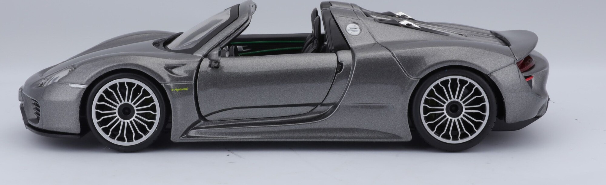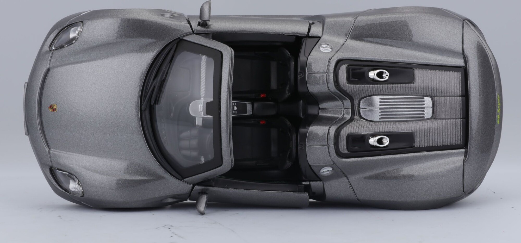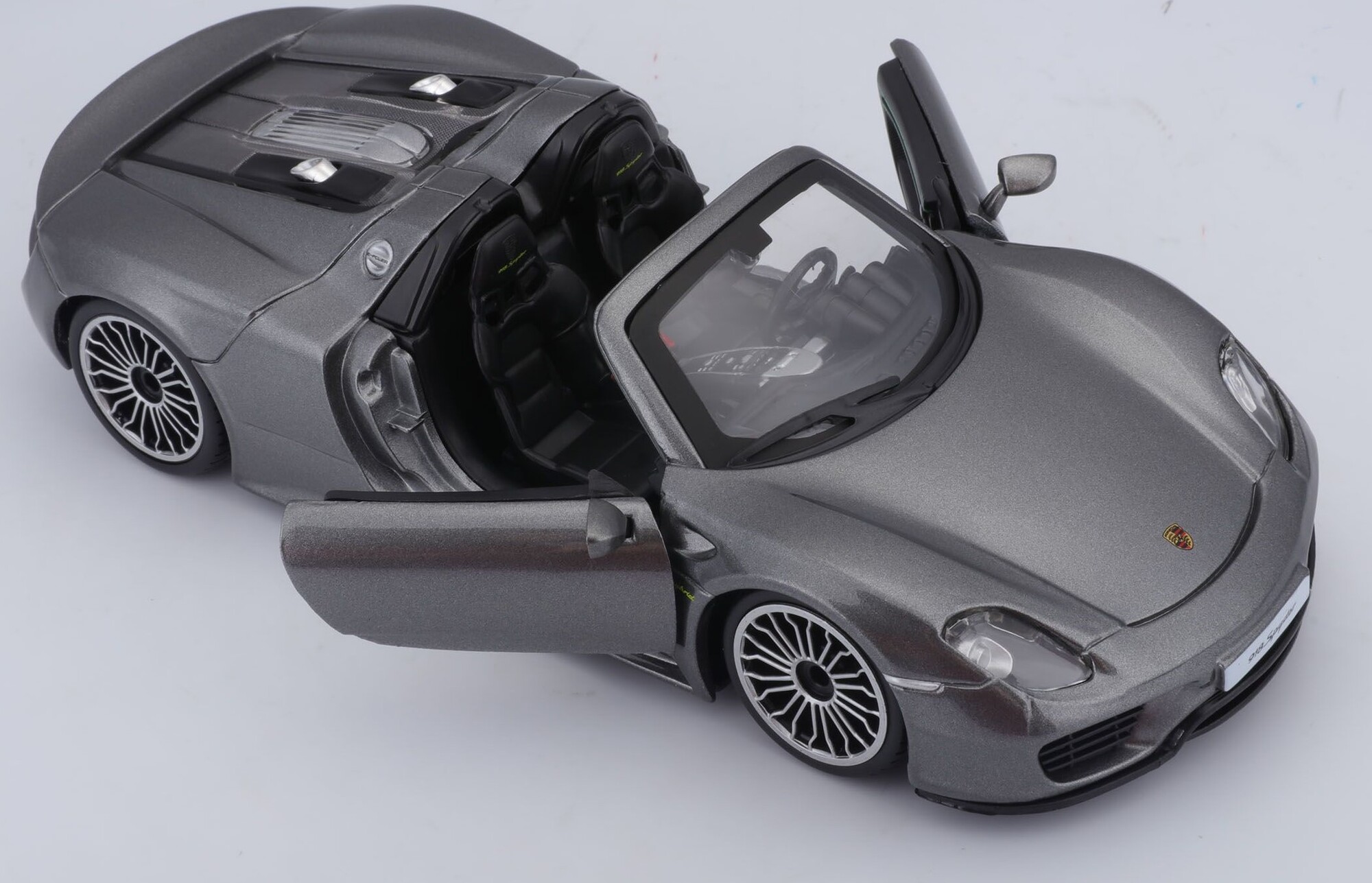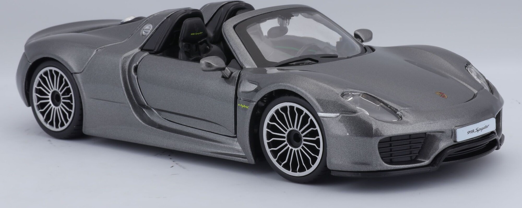 Bburago Porsche 918 Spyder 1:24 PLUS, výrobca Bburago. Kovový model auta Porsche 918 Spyder v mierke 1:24 Kolekcia Plus Model má otváracie dver Volant je funkčný Farba: metalická šedá katalógové číslo 21076 Pre deti od 3 rokov