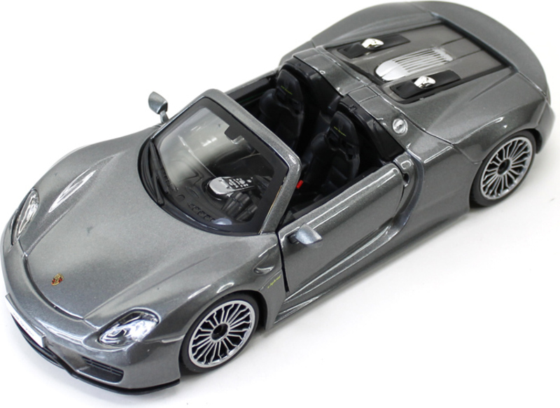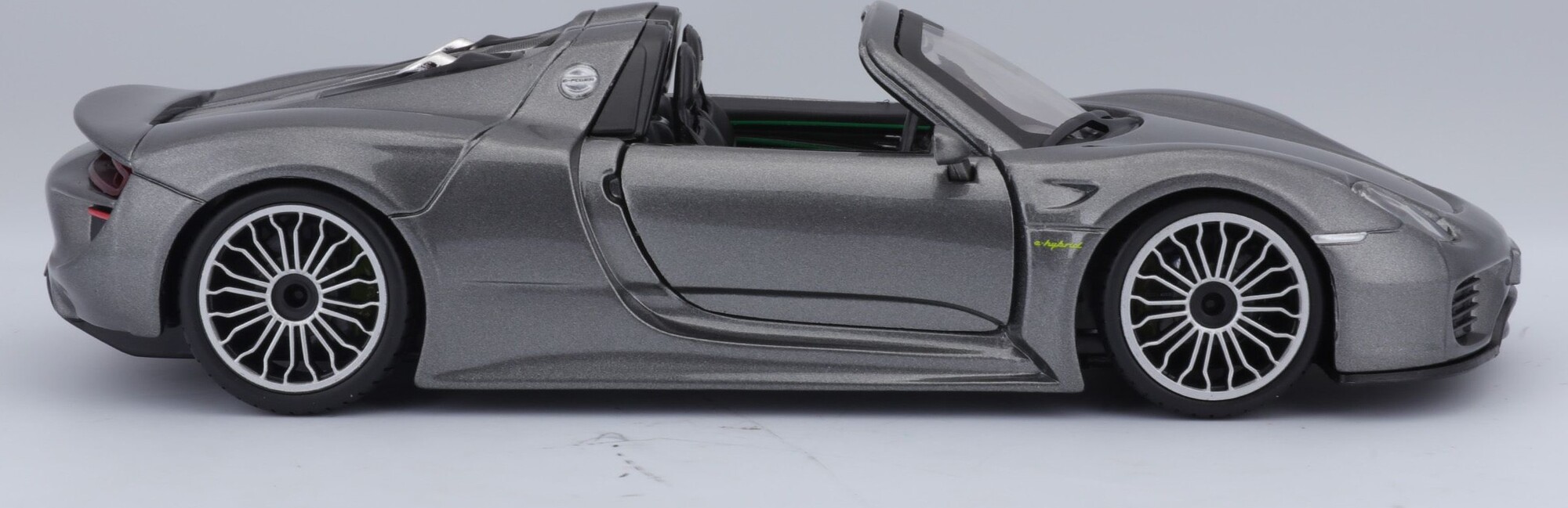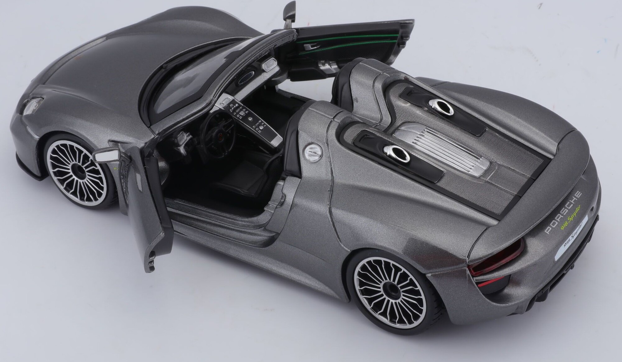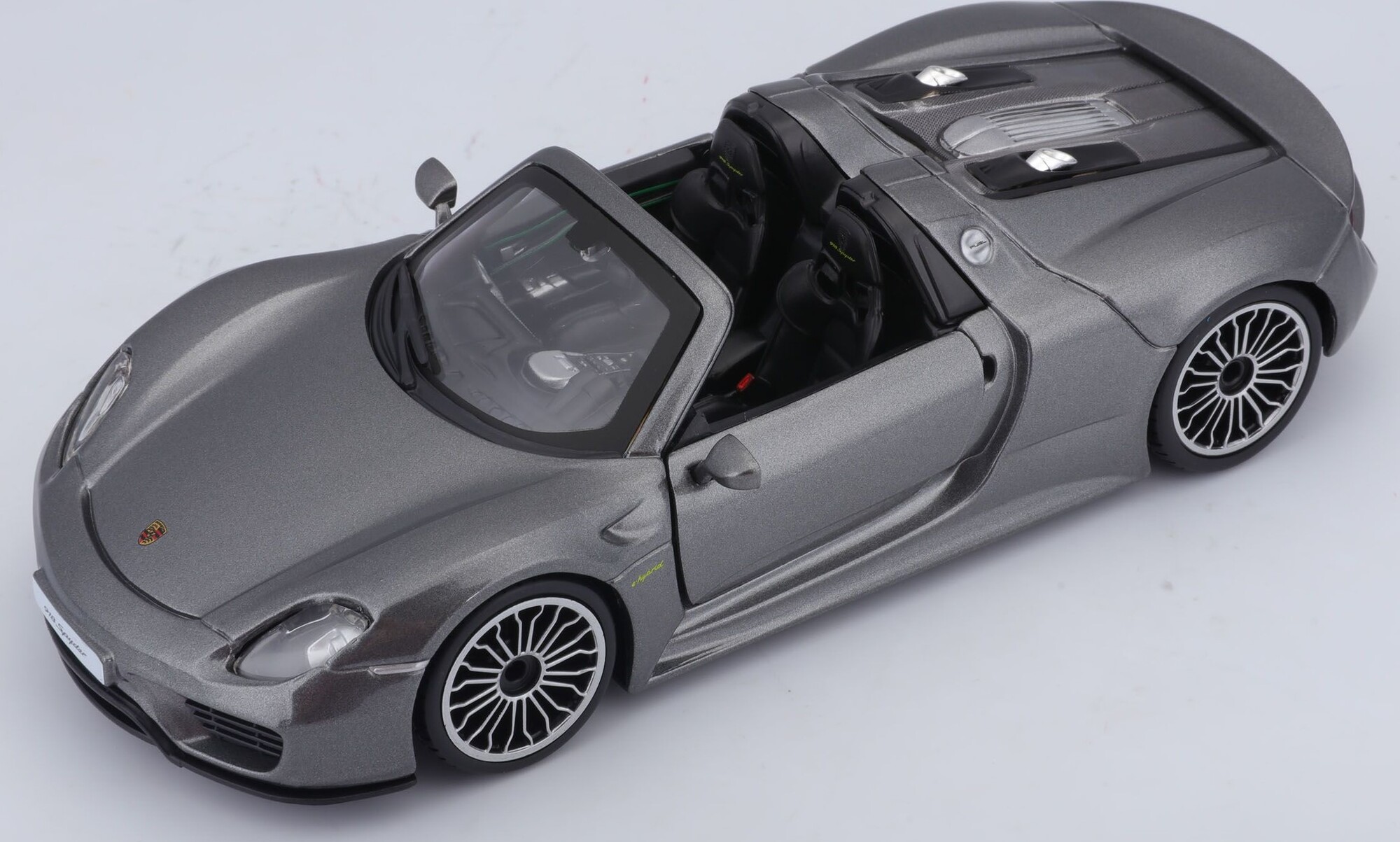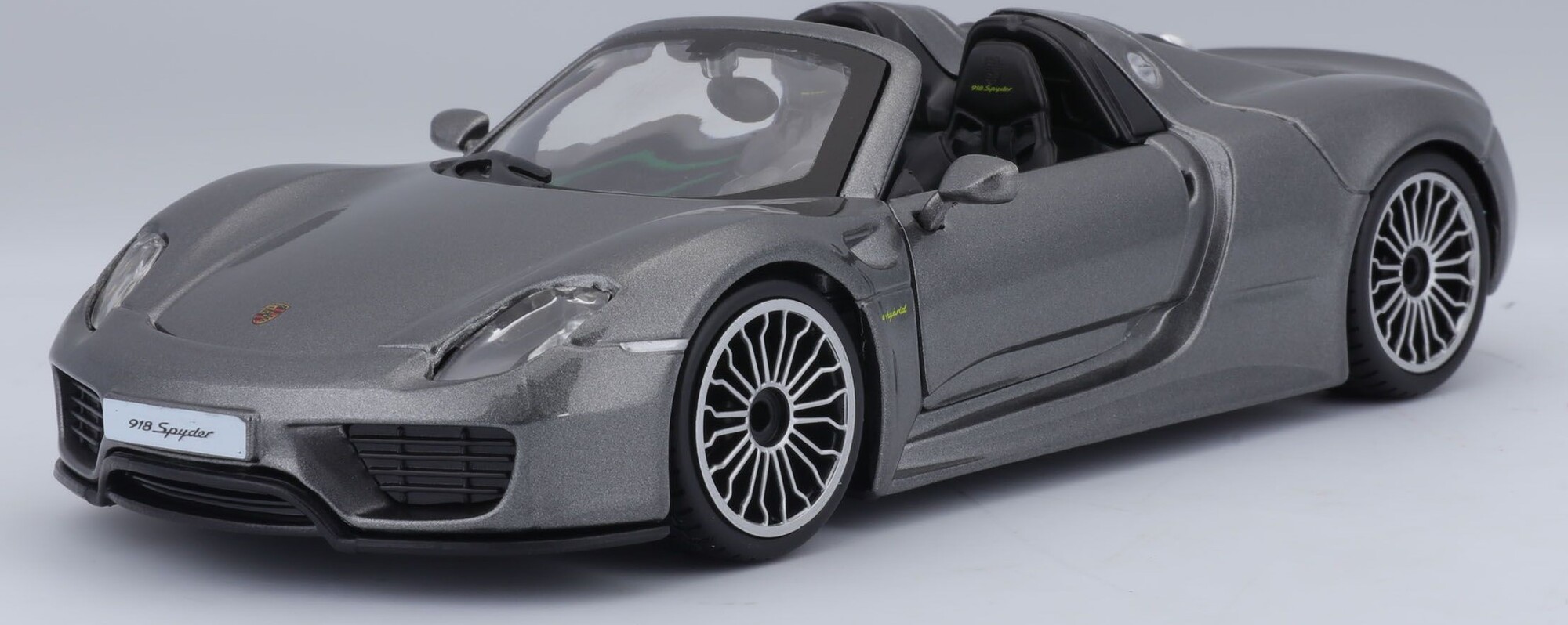Bburago Porsche 918 Spyder 1:24 PLUS, výrobca Bburago. Kovový model auta Porsche 918 Spyder v mierke 1:24 Kolekcia Plus Model má otváracie dver Volant je funkčný Farba: metalická šedá katalógové číslo 21076 Pre deti od 3 rokov