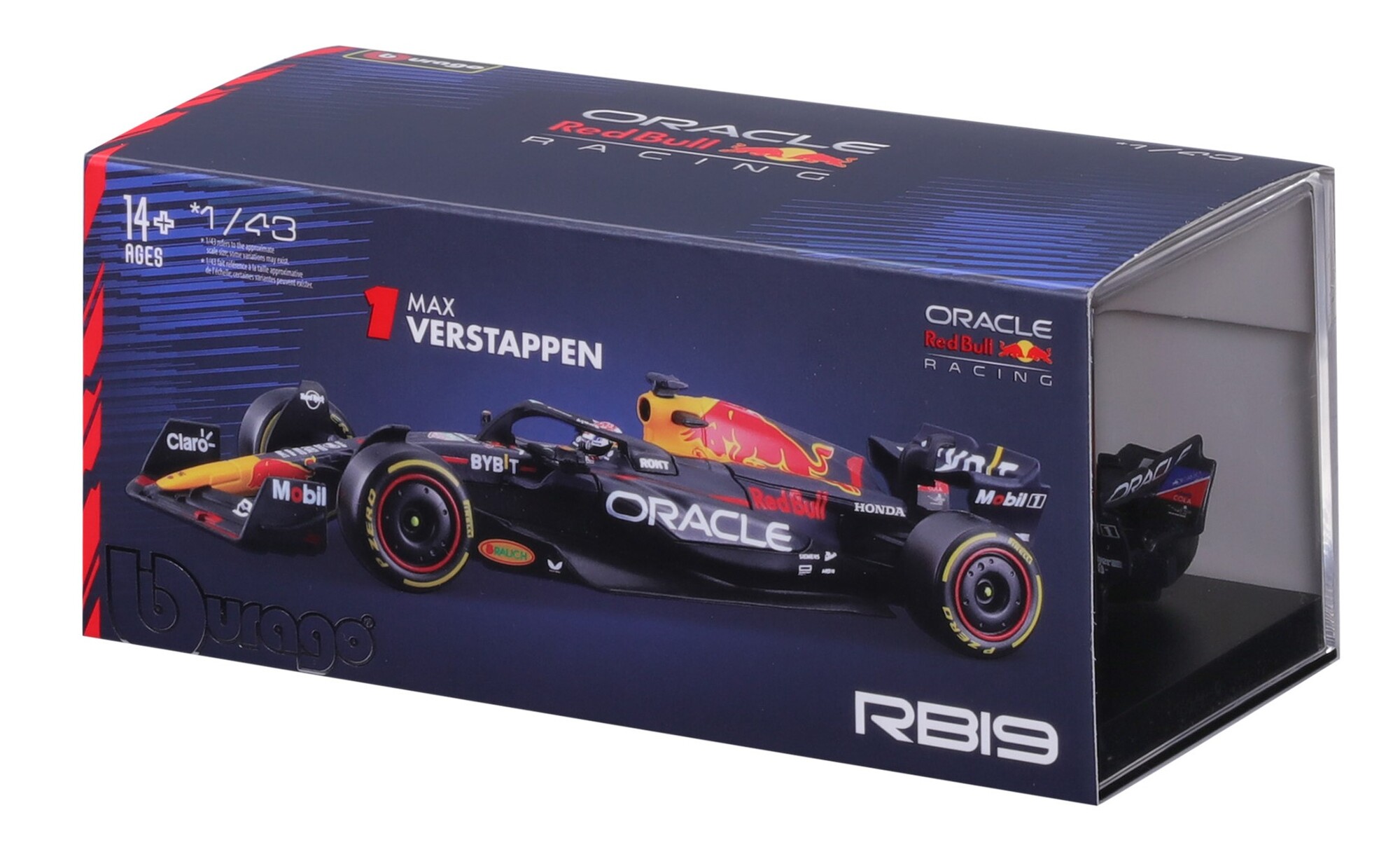 Bburago 1:43 RACE Formula F1 - Red Bull Racing RB19 (2023) #1 (Max Verstappen) - with driver and decorative box