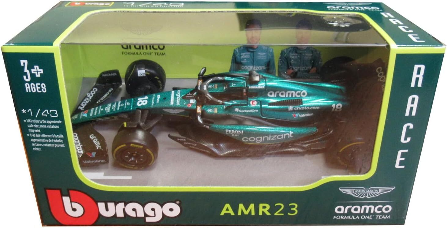 Bburago 2025new Bburago 1:43 RACE Formula F1 - Aston Martin  AMR23 (2023) #18 Lance Stroll with driver