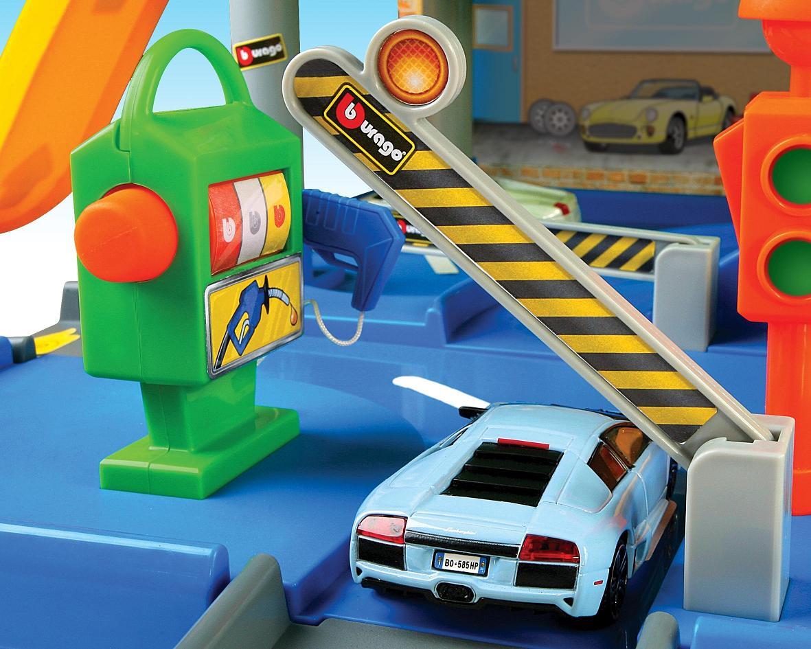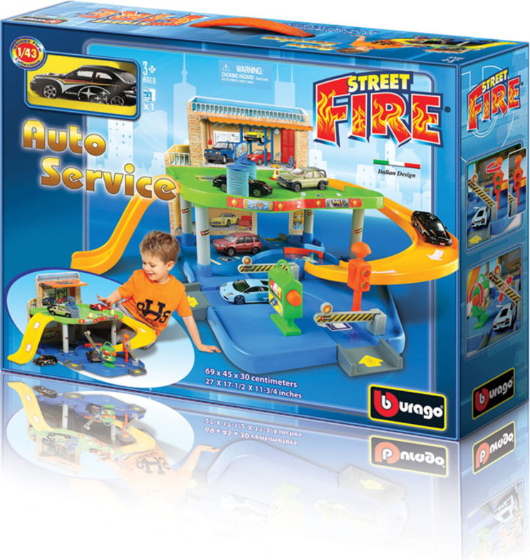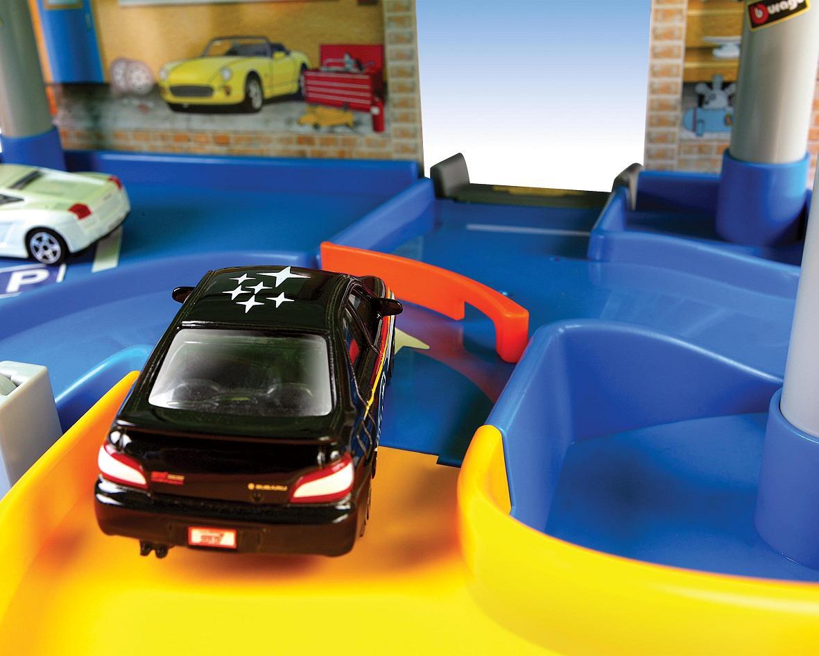 Bburago poschodová garáž s autoservisom 30039, výrobca BBurago. Skladacia poschodová garáž obsahuje všetko, čo bude malý opravár k hre potrebovať. Súčasťou je: autoopravovňa, cesta, rampa, pumpa, umzvárka...V balení je aj jedno autíčko Bburago v mierke 1:43.Rozmer garáže je 69x45x30 cm. Pre deti do 3 rokov