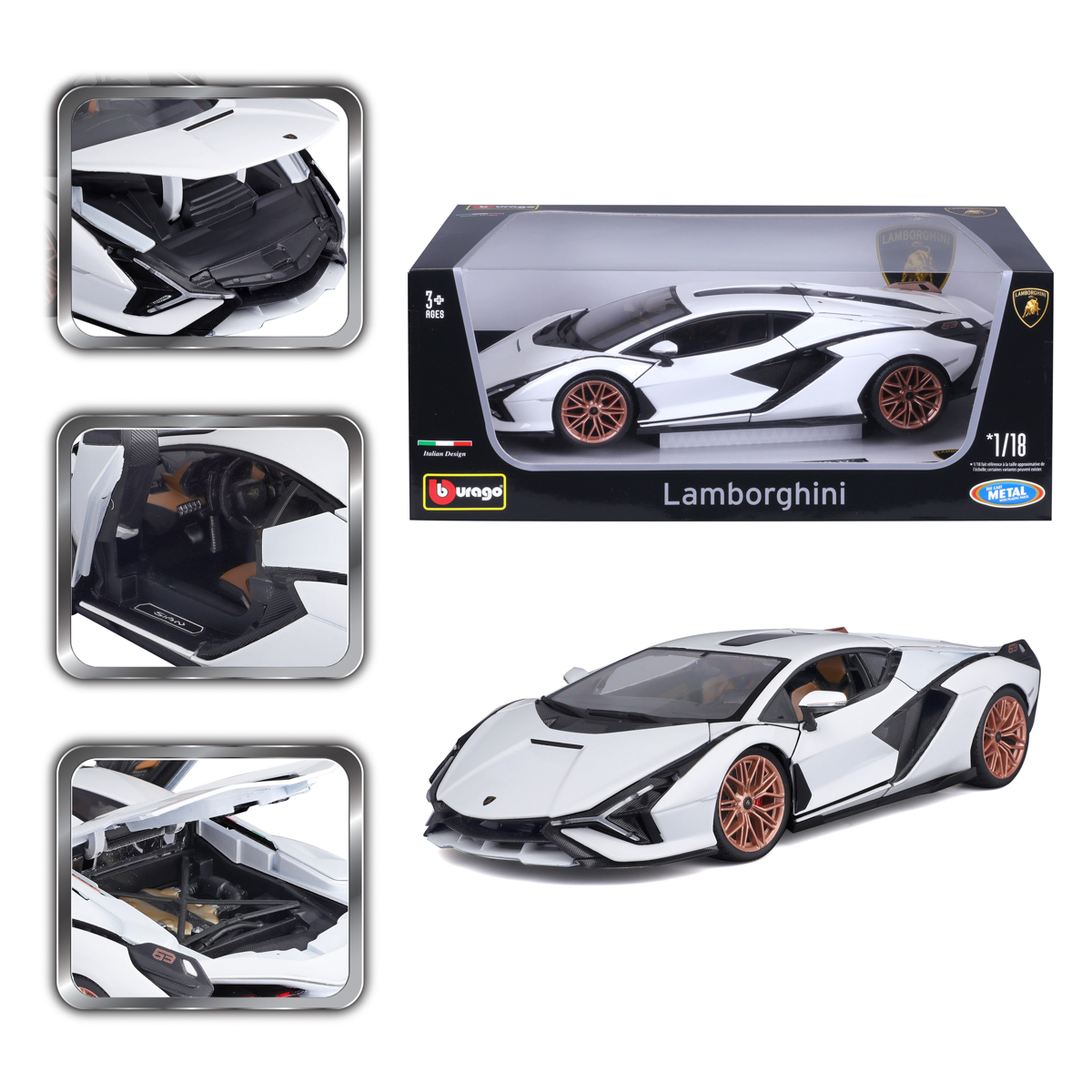 Bburago Bburago - Autá HOBBY, Lamborghini Sián FKP 37, biela, 1:18