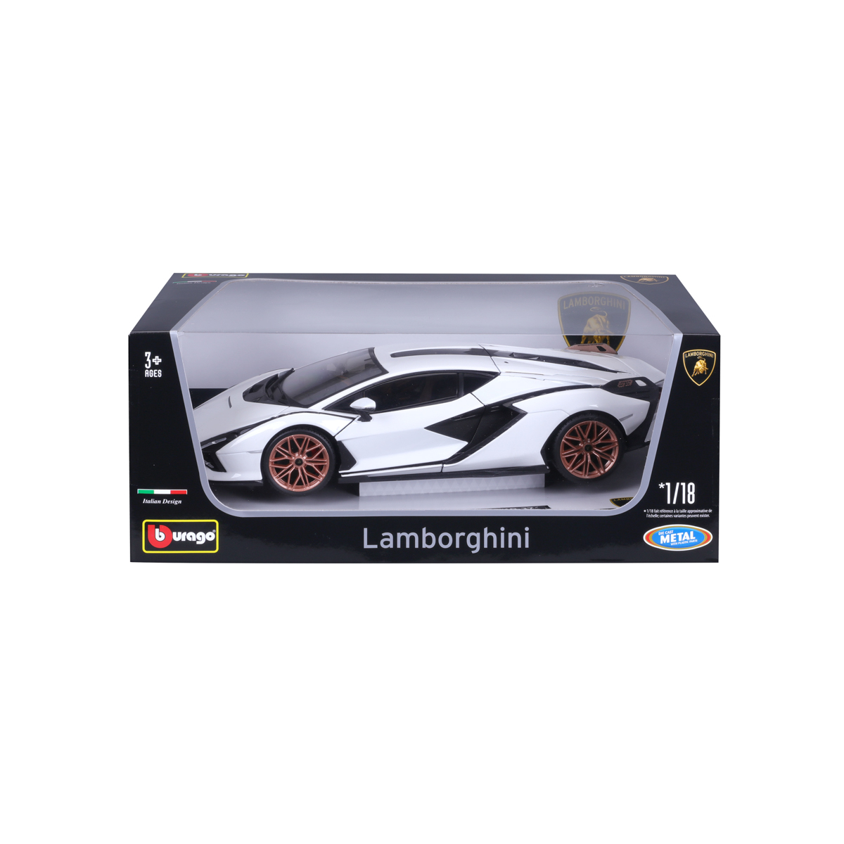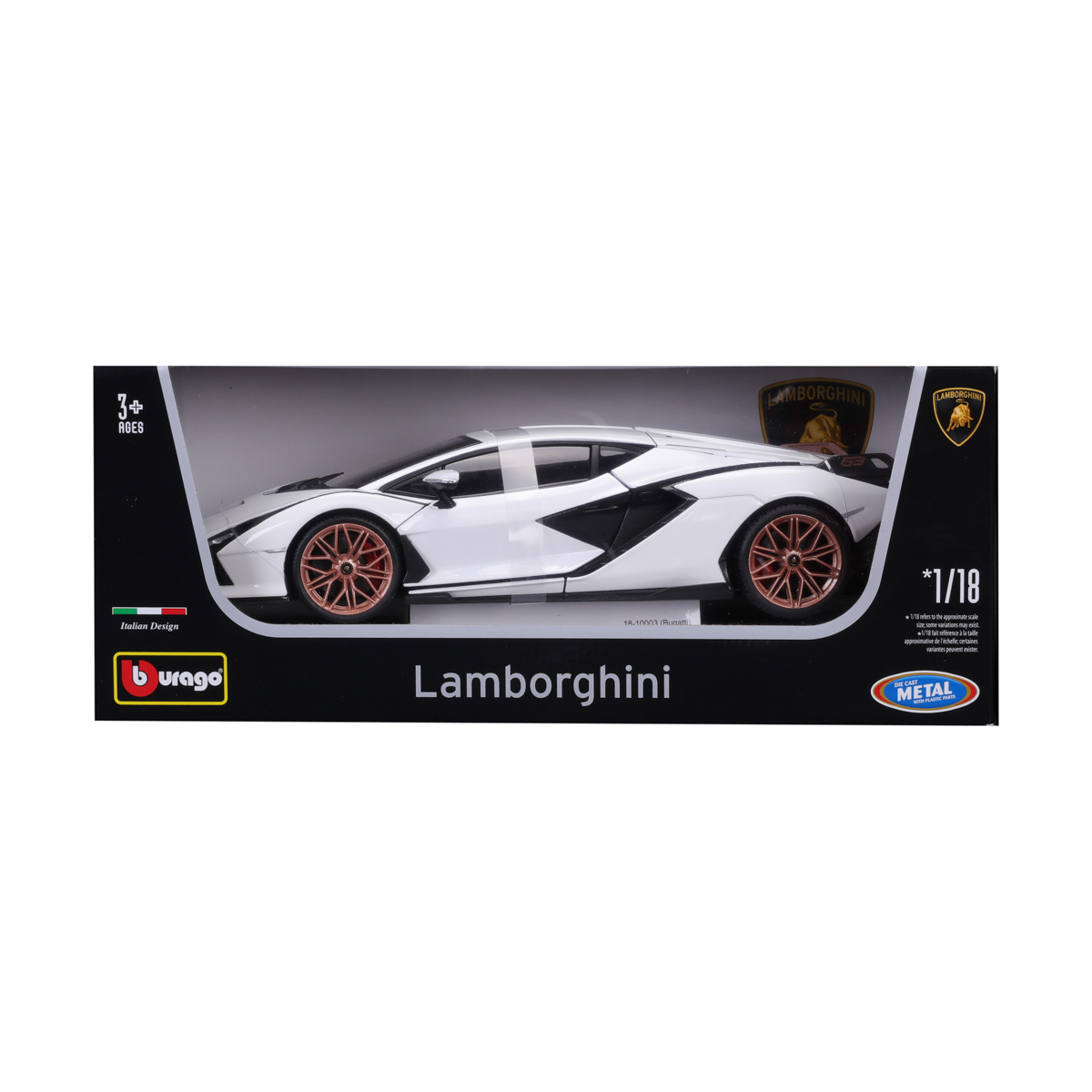 Modely automobilov Bburago v mierke 1:18 sú zbierkou krásneho designu s vysokým dôrazom na presnosť detailov. Modely sú vyrobené z liateho kovu s plastovými detailmi. Väčšina modelov z kolekcie má otváracie dvere, kufor alebo kapotu. Niektoré z modelov majú funkčné riadenie. Balené v licenčnej krabičke. Nevhodné pre deti do 3 rokov. Rozmery balenia: 12 x 30 x 17,7 cm. Vek 3+