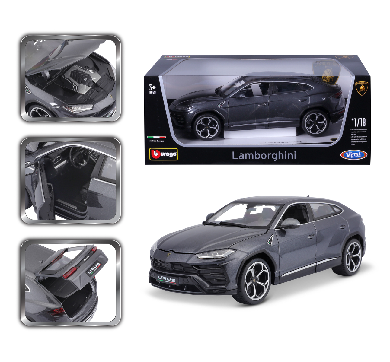 Bburago - Autá HOBBY, Lamborghini Urus, metal šedá, 1:18