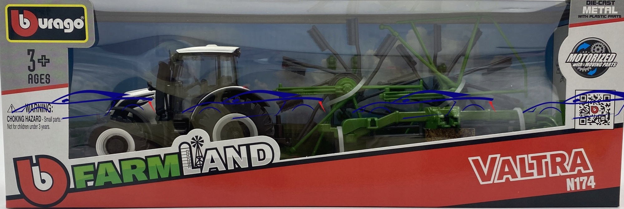 Bburago 2025online Bburago Farm 10cm Tractor with Deluxe Trailer - Valtra N174 - Whirl Rake