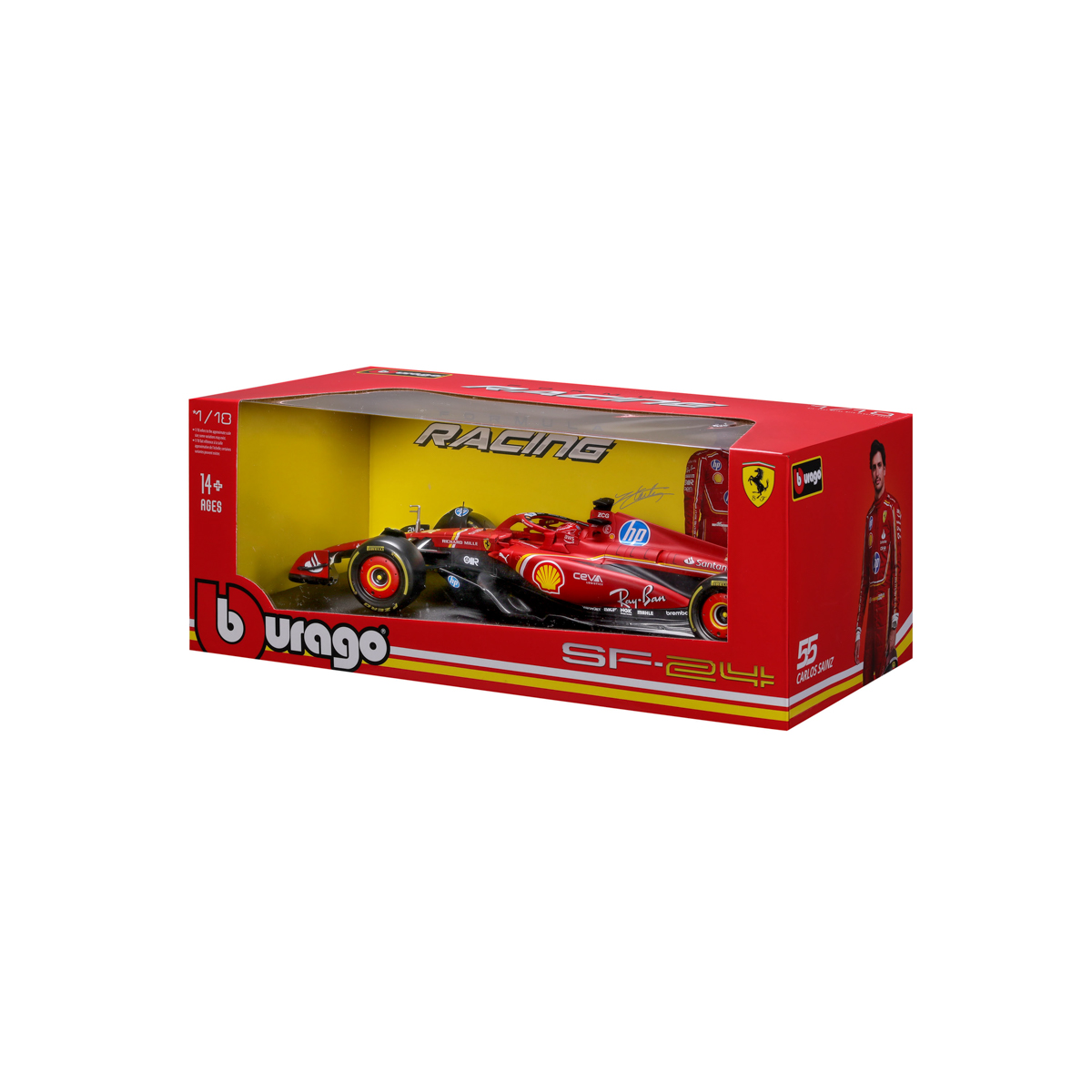 Bburago modely závodných vozidiel Formule 1 v mierke 1:18 z kolekcie FORMULA RACING sú zbierkou krásneho designu s vysokým dôrazom na presnosť detailov, vrátane prilby vodiča. Modely F1 zo stajne Ferrari SF-24 (2024) sú vyrobené z liateho kovu s plastovými detailmi. Každý z modelov je v klasickom závodnom designe a so závodným číslom. Balené v krabičke. Nevhodné pre deti do 3 rokov. Rozmery balenia: 13,8 x 35 x 18,5 cm. Vek: 14+