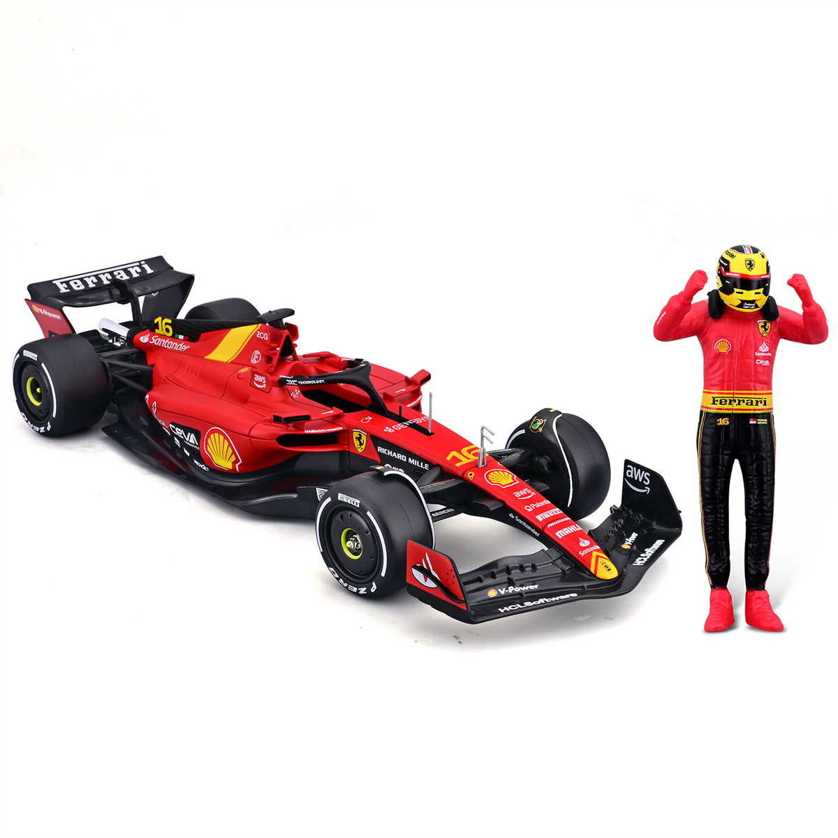 Bburago modely závodných vozidiel Formule 1 v mierke 1:24 z kolekcie FORMULA RACING sú zbierkou krásneho designu s vysokým dôrazom na presnosť detailov. Súčasťou modelov je plastová figúrka jazdca F1 v majstrovskej póze. Modely F1 zo stajne Ferrari SF-23 (2023) sú vyrobené z liateho kovu s plastovými detailmi. Každý z modelov je v klasickom závodnom designe a so závodným číslom. Balené v krabičke. Nevhodné pre deti do 3 rokov. Rozmery balenia: 12,7 x 28 x 12,7 cm. Vek: 14+