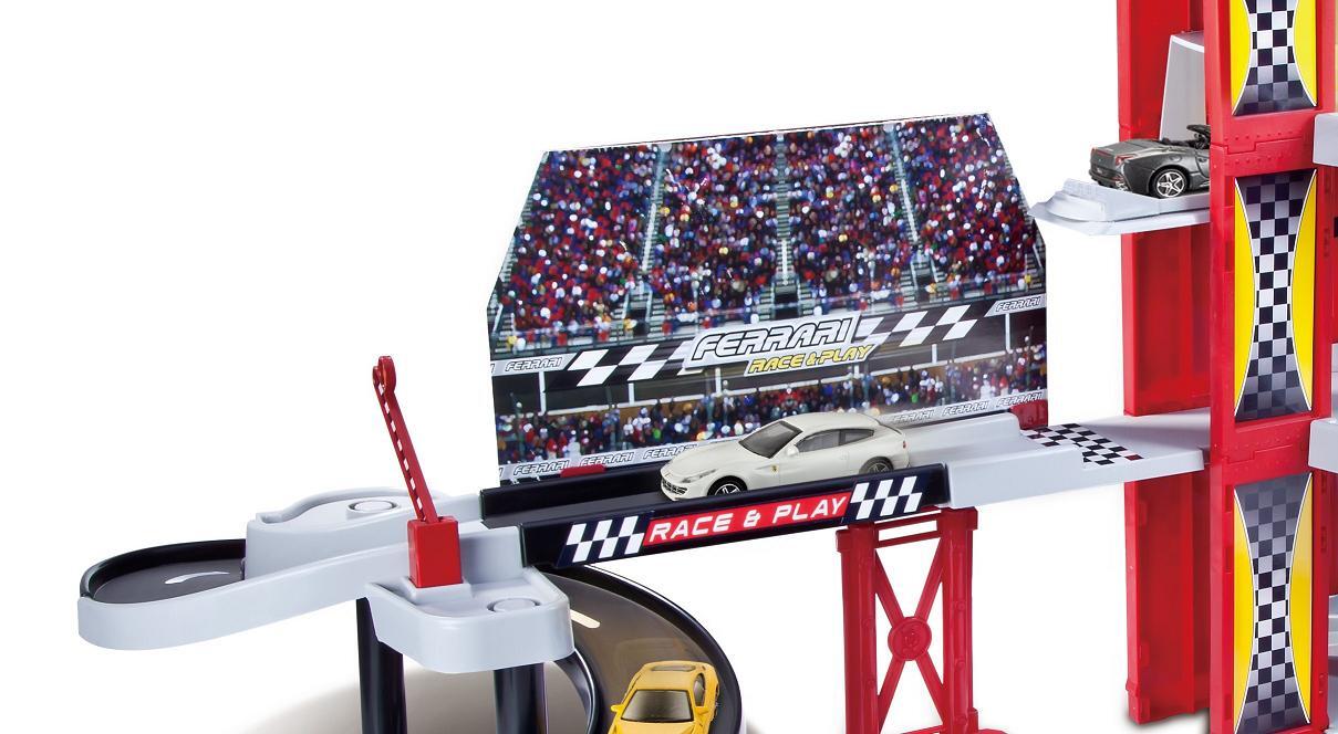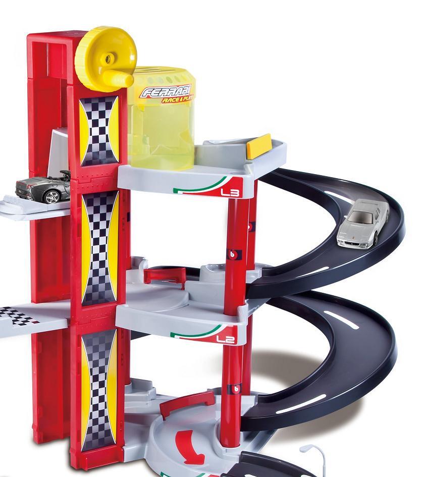 Bburago Ferrari Racing garáž s jedným autíčkom 30197, výrobca Bburago. Zaži atmosféru pretekov Ferrari! Trojpodlažná garáž: s mechanickým výťahom s pit stopom rampou s mechanickými výhybkami, pomocou ktorých chlapec určuje, kam autíčko pôjde s prvkami, ktoré si dieťa dozdobí vystrihnutím z krabice V balení je model Ferrari v mierke 1:43 Rozmery garáže: 99 x58 x 48 cm Pre deti od 3 rokov