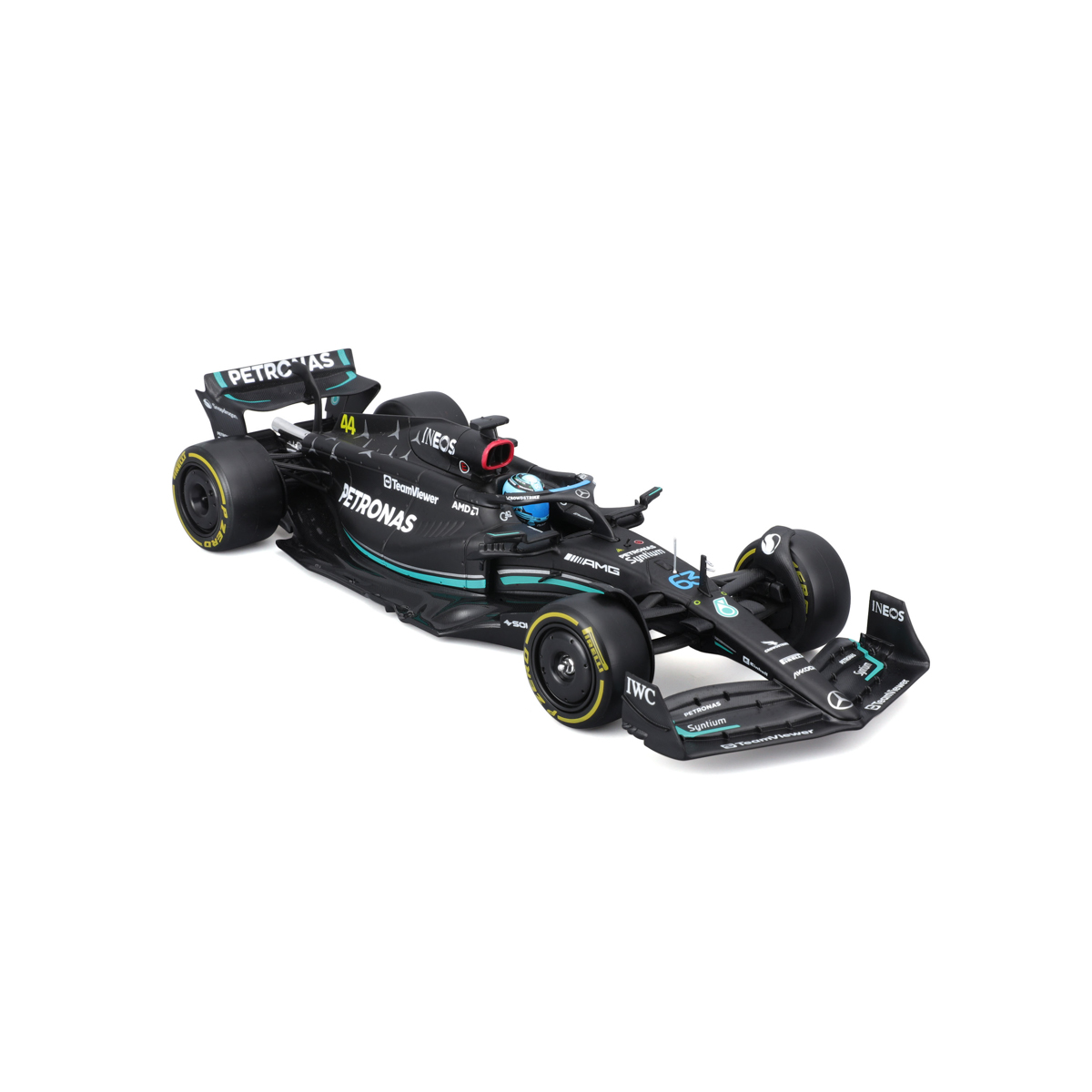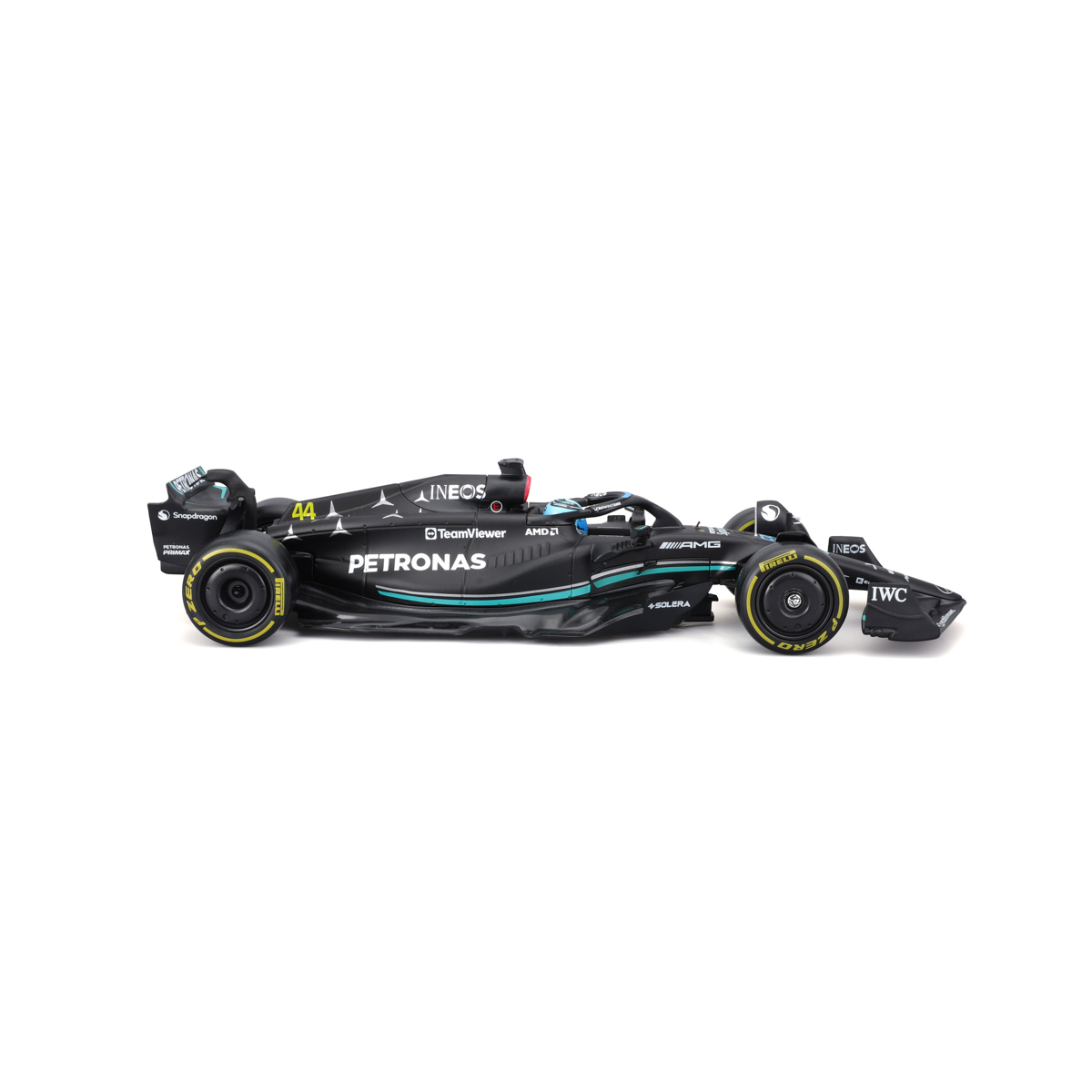 Bburago modely závodných vozidiel Formule 1 v mierke 1:24 z kolekcie RACE sú zbierkou krásneho dizajnu s vysokým dôrazom na presnosť detailov. Formula zo stajne Mercedes-AMG Petronas W14 (2023) s autentickými detailmi závodného vozidla a helmy jazdca. Modely sú vyrobené z liateho kovu s plastovými detailmi. Každý z modelov v klasickom závodnom dizajne je umiestnený v dekoratívnom akrylovom boxe. Vďaka dekoratívnemu boxu je tento model skvelým zberateľským kúskom a darčekom na každú príležitosť. Nevhodné pre deti do 3 rokov. Rozmery balenia: 8,7 x 25,1 x 11,8 cm. Vek: 14+