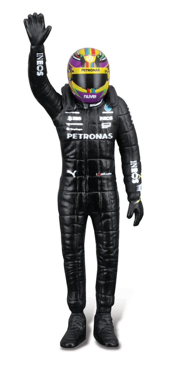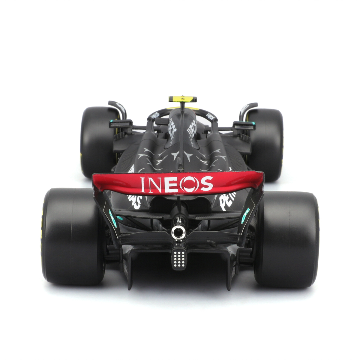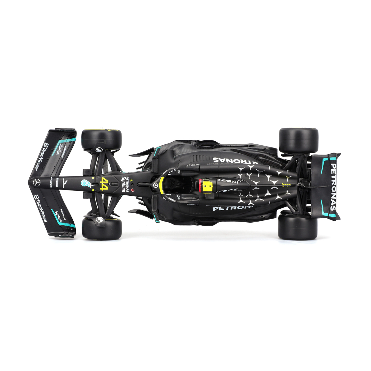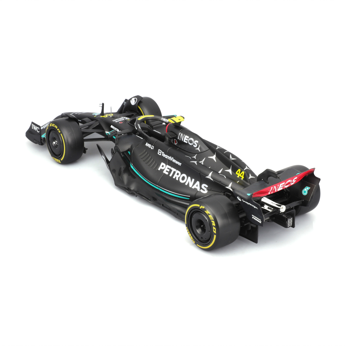 Bburago modely závodných vozidiel Formule 1 v mierke 1:24 z kolekcie RACE sú zbierkou krásneho designu s vysokým dôrazom na presnosť detailov. Súčasťou modelov je plastová figúrka jazdca F1 v majstrovskej póze. Modely F1 zo stajne Mercedes-AMG Petronas Team W14 E Performance (2023) sú vyrobené z liateho kovu s plastovými detailmi. Každý z modelov je v klasickom závodnom designe a so závodným číslom. Balené v krabičke. Nevhodné pre deti do 3 rokov. Rozmery balenia: 12,7 x 28 x 12,7 cm. Vek: 14+