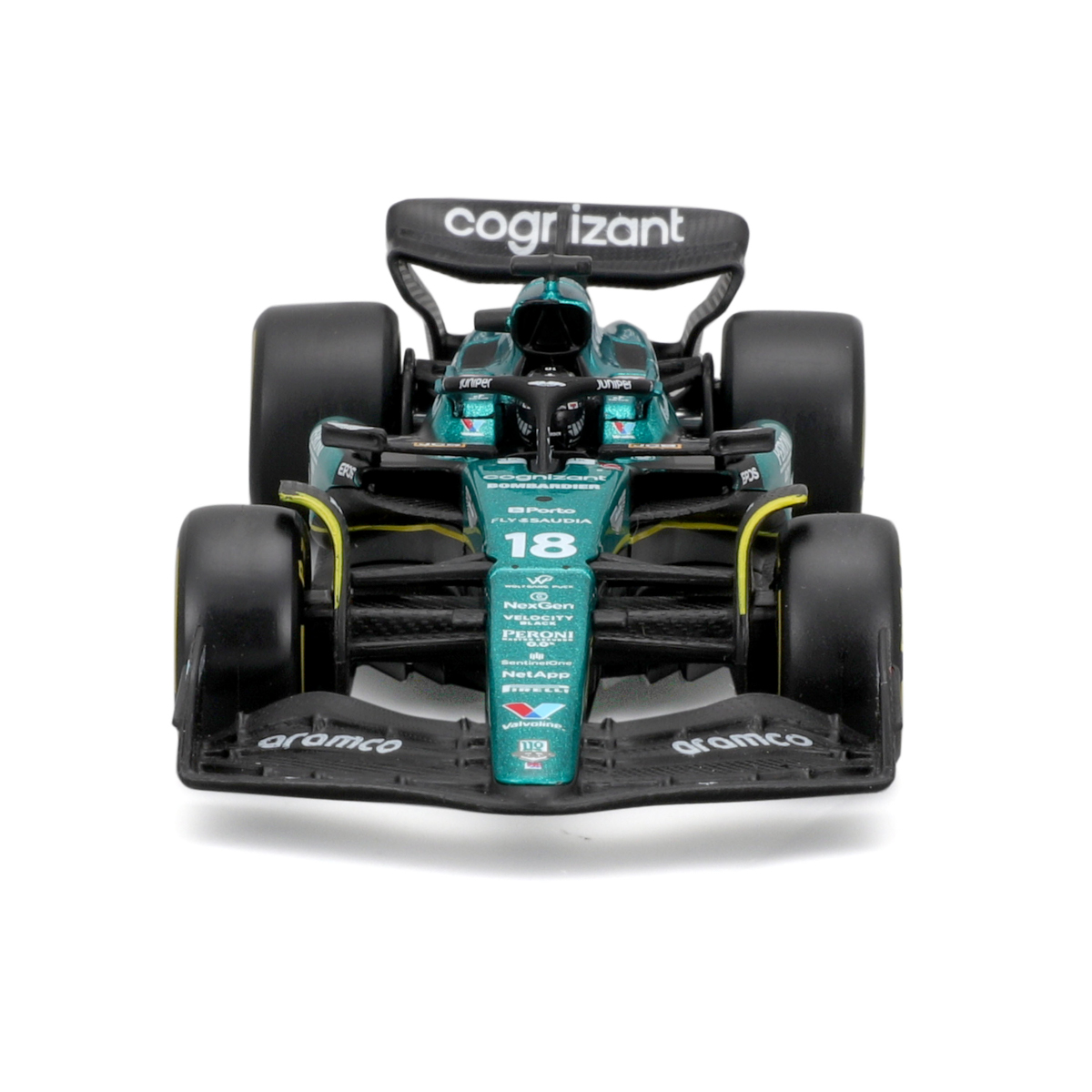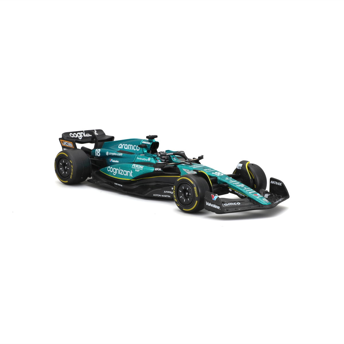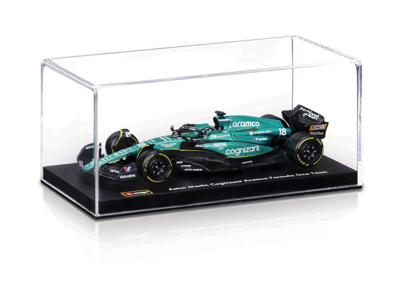 Bburago modely závodných vozidiel Formule 1 v mierke 1:43 z kolekcie RACE sú zbierkou krásneho dizajnu s vysokým dôrazom na presnosť detailov. Formula zo stajne Aston Martin Aramco Congnizant AMR23 (2023) s autentickými detailmi závodného vozidla a helmy jazdca. Modely sú vyrobené z liateho kovu s plastovými detailmi. Každý z modelov v klasickom závodnom dizajne je umiestnený v dekoratívnom akrylovom boxe. Vďaka dekoratívnemu boxu je tento model skvelým zberateľským kúskom a darčekom na každú príležitosť. Nevhodné pre deti do 3 rokov. Rozmery balenia: 6,7 x 14,7 x 7,5 cm. Vek: 14+