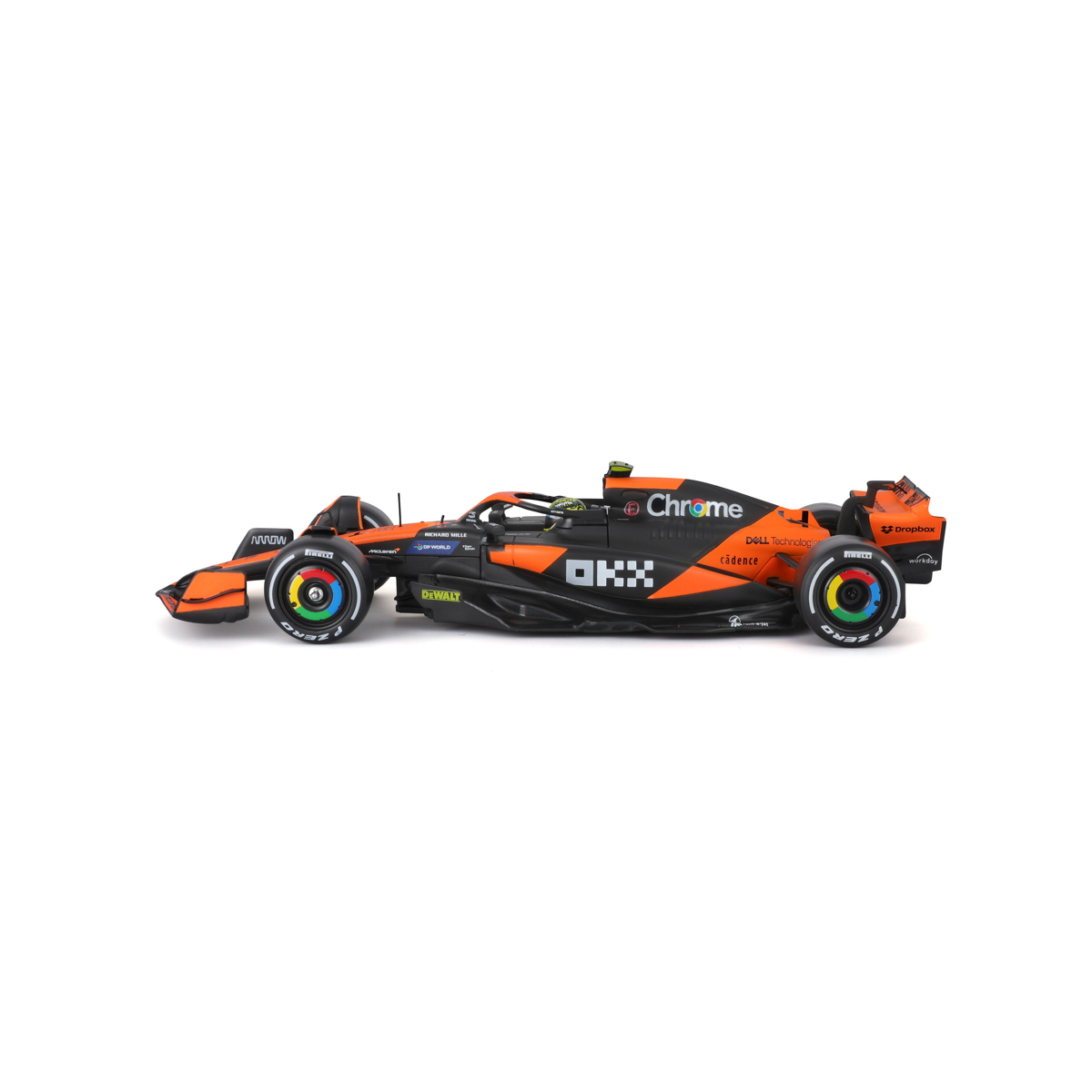 Bburago modely závodných vozidiel Formule 1 v mierke 1:24 z kolekcie RACE sú zbierkou krásneho dizajnu s vysokým dôrazom na presnosť detailov. Formula zo stajne McLaren MCL38 (2024) s autentickými detailmi závodného vozidla a helmy jazdca. Modely sú vyrobené z liateho kovu s plastovými detailmi. Každý z modelov v klasickom závodnom dizajne je umiestnený v dekoratívnom akrylovom boxe. Vďaka dekoratívnemu boxu je tento model skvelým zberateľským kúskom a darčekom na každú príležitosť. Nevhodné pre deti do 3 rokov. Rozmery balenia: 11,8 x 26,1 x 8,7 cm. Vek: 14+