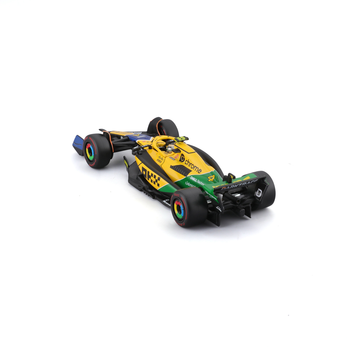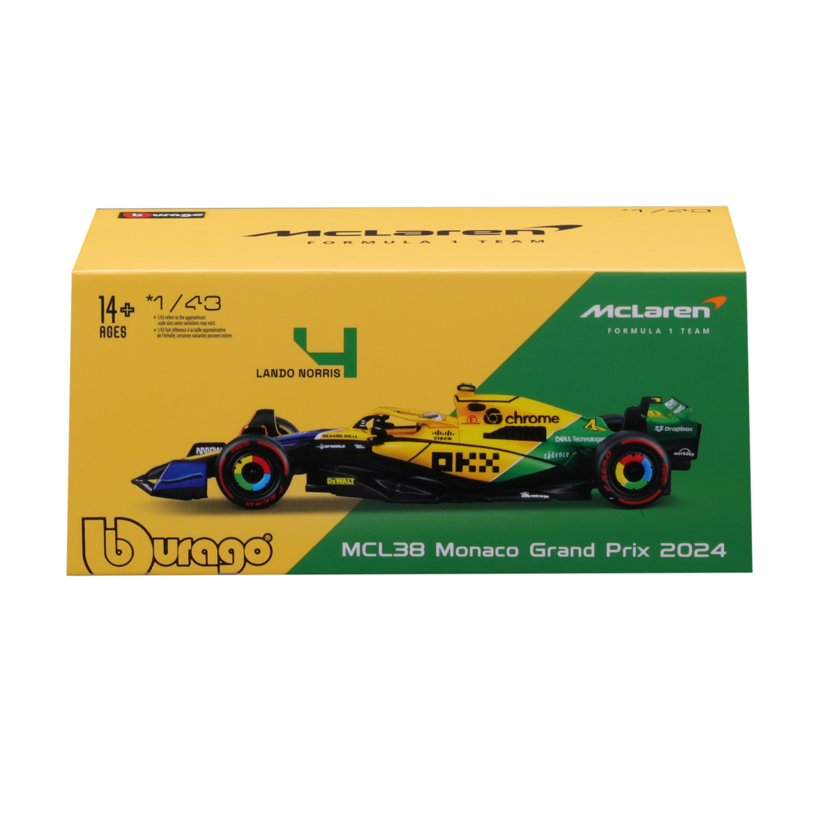 Bburago modely závodných vozidiel Formule 1 v mierke 1:43 z kolekcie RACE sú zbierkou krásneho dizajnu s vysokým dôrazom na presnosť detailov. Formula zo stajne McLaren MCL38 (2024) v špeciálnej Senna Edition s autentickými detailmi závodného vozidla a helmy jazdca. Modely sú vyrobené z liateho kovu s plastovými detailmi. Každý z modelov v klasickom závodnom dizajne je umiestnený v dekoratívnom akrylovom boxe. Vďaka dekoratívnemu boxu je tento model skvelým zberateľským kúskom a darčekom na každú príležitosť. Nevhodné pre deti do 3 rokov. Rozmery balenia: 6,7 x 14,7 x 7,5 cm. Vek: 14+