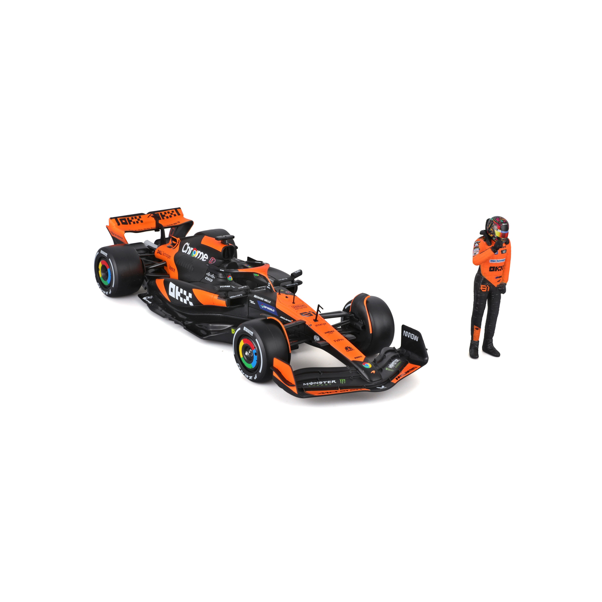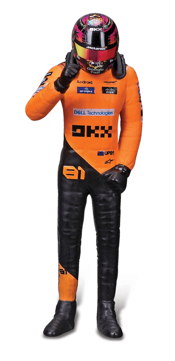 Bburago modely závodných vozidiel Formule 1 v mierke 1:24 z kolekcie RACE sú zbierkou krásneho designu s vysokým dôrazom na presnosť detailov. Súčasťou modelov je plastová figúrka jazdca F1 v majstrovskej póze. Modely F1 zo stajne McLaren MCL38 (2024) sú vyrobené z liateho kovu s plastovými detailmi. Každý z modelov je v klasickom závodnom designe a so závodným číslom. Balené v krabičke. Nevhodné pre deti do 3 rokov. Rozmery balenia: 12,7 x 28 x 12,7 cm. Vek: 14+