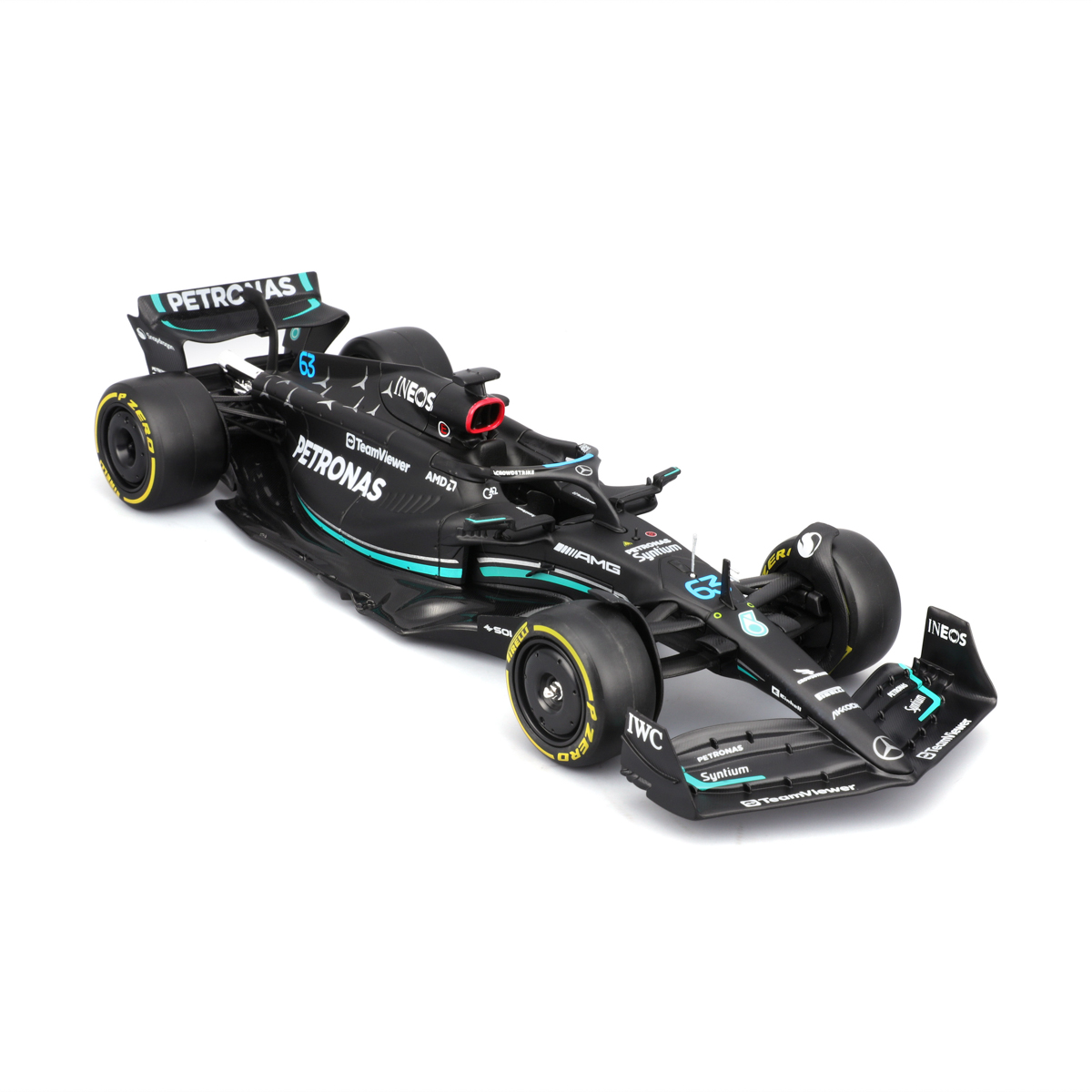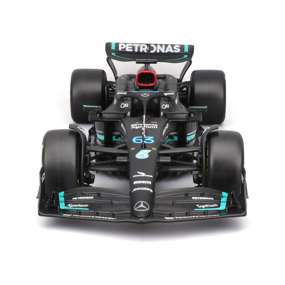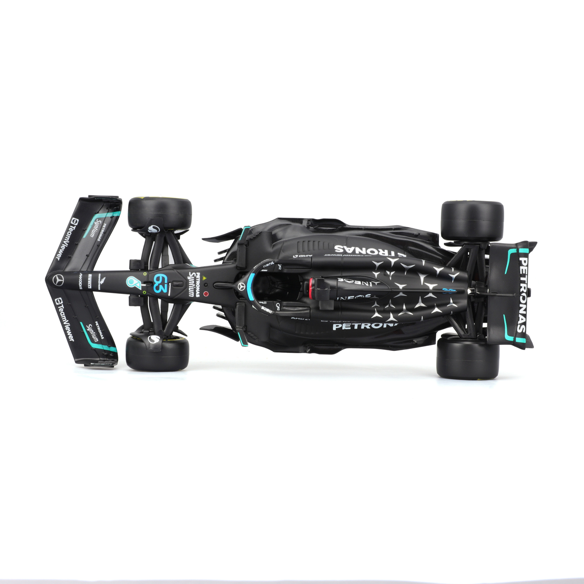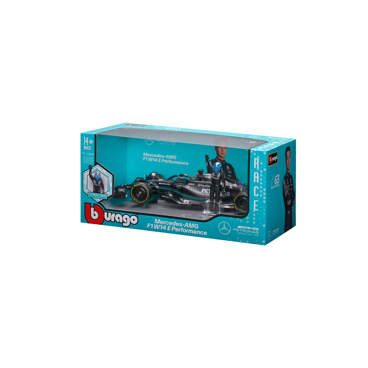 Bburago – RACE Formula F1 s figúrkou jazdca, Mercedes-AMG W14 E Performance (2023) #63 Russell, 1:24