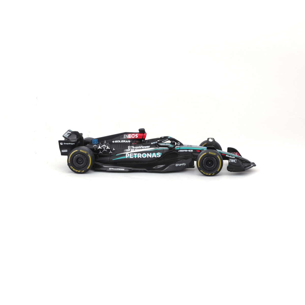 Bburago modely závodných vozidiel Formule 1 v mierke 1:43 z kolekcie RACE sú zbierkou krásneho designu s vysokým dôrazom na presnosť detailov. Modely F1 zo stajne Mercedes-AMG Petronas W15 (2024) sú vyrobené z liateho kovu s plastovými detailmi. Každý z modelov je v klasickom závodnom designe a so závodným číslom. Balené v krabičke. Nevhodné pre deti do 3 rokov. Rozmery balenia: 6,7 x 14,7 x 7,5 cm. Vek: 3+