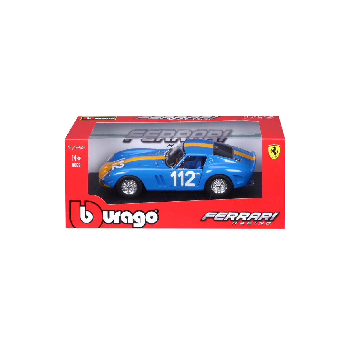 Modely závodných automobilov Ferrari v mierke 1:24 z kolekcie RACING sú zbierkou krásneho designu s vysokým dôrazom na presnosť detailov. Modely sú vyrobené z liateho kovu s plastovými detailmi. Detailné prevedenie motorových priestorov a interiéru. Väčšina modelov z kolekcie má otváracie dvere, kufor alebo kapotu. Niektoré z modelov majú funkčné riadenie. Každý z modelov je v závodnom dizajne a so závodným číslom. Model je namontovaný na výstavnom stojane. Balené v krabičke. Nevhodné pre deti do 3 rokov. Rozmery balenia: 10,3 x 24,5 x 12,6 cm. Vek: 14+