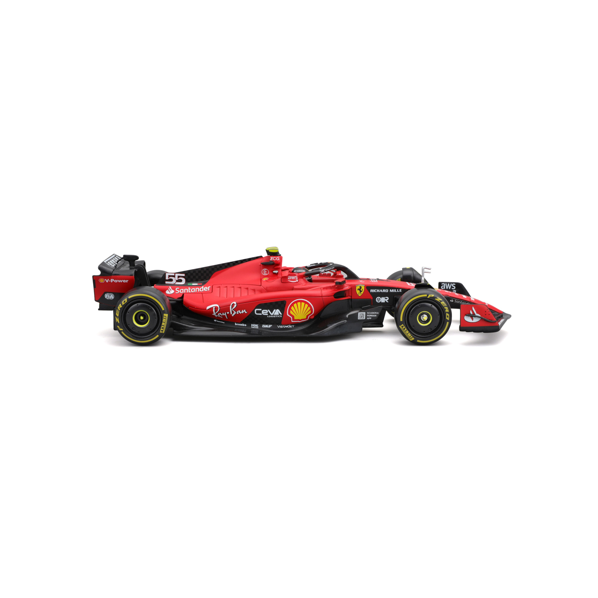 Bburago modely závodných vozidiel Formule 1 v mierke 1:24 z kolekcie FORMULA RACING sú zbierkou krásneho dizajnu s vysokým dôrazom na presnosť detailov. Formula zo stajne Ferrari SF-23 (2023) s autentickými detailmi závodného vozidla a helmy jazdca. Modely sú vyrobené z liateho kovu s plastovými detailmi. Každý z modelov v klasickom závodnom dizajne je umiestnený v dekoratívnom akrylovom boxe. Vďaka dekoratívnemu boxu je tento model skvelým zberateľským kúskom a darčekom na každú príležitosť. Nevhodné pre deti do 3 rokov. Rozmery balenia: 8,7 x 26,1 x 11,8 cm. Vek: 14+