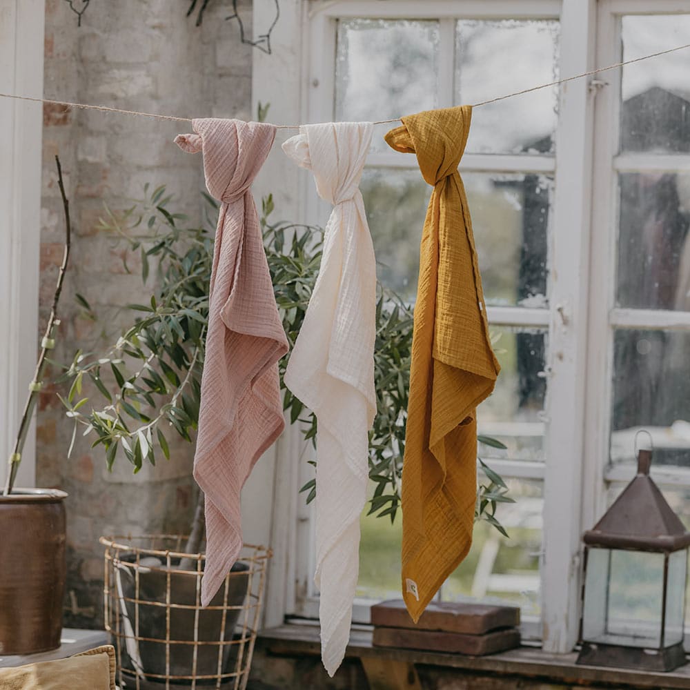 BIBS je obľúbená dánska detská značka s viac ako 40 ročnou tradíciou, pre ktorú je typický minimalistický škandinávsky dizajn a široká farebná paleta. Okrem ikonických cumlíkov BIBS ponúka aj pestrý prémiový sortiment pre najmenšie deti. Plienky sú jednou zo základných vecí každej detskej výbavičky. BIBS plienky sú vyrobené z nariaseného mušelínu zo 100% organickej bavlny. Mušelín je najhebkejšia bavlnená látka, mimoriadne príjemná na kontakt s jemnou detskou pokožkou. BIBS plienky majú navyše unikátne zväčšené vešiakové pútko. Vďaka vlastnostiam mušelínu a praktickému pútku plienky ľahko premeníte na užitočných pomocníkov:• podbradník• ľahká prikrývka na spanie • osuška pri kúpaní • podložka na spanie alebo prebaľovanie • plienka na odgrgnutie • zahalenie sa pri dojčení • maznáčik Údržba: Pranie na 40°C v práčke, jemný program. Praním môže dôjsť k zmene veľkosti a tvaru plienok o cca 10%. Nežehliť, nečistiť chemicky, nesušiť v sušičke. Čím viac sa mušelín perie, tým je mäkší a viac absorbuje vlhkosť. Používanie aviváže môže znižovať absorpčnú schopnosť. Zloženie: 100%-ná organická BIO bavlnaBalenie : 2 ks Rozmery: 70 cm x 70 cm