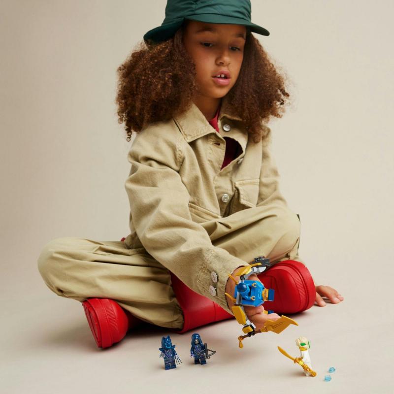 Chlapci a dievčatá od 6 rokov si môžu zinscenovať akčné súboje z 2. série televízneho seriálu NINJAGO® Dragons Rising s touto stavebnicou Bojový balíček Jayovho robota (71805). Táto nindžovská stavebnica obsahuje parádnu figúrku robota s polohovateľnými rukami, nohami a trupom, ktorý má v rukách veľký zlatý meč a môže odpaľovať projektily zo svojich 2 vystreľovačov. Táto nindžovská hračka je plná 4 minifigúrok NINJAGO a množstvom doplnkov. Jay je vyzbrojený zlatým mečom a minifigúrka Majstra Lloyda má 2 zlaté meče katany. Pazúrnatý bojovník vo vlčej maske má na oboch rukách dlhé pazúry a Strážca vo vlčej maske je vybavený kušou. Zvyšok série zostaviteľných nindžovských hračiek LEGO® NINJAGO pre deti je plný drakov, vozidiel a chrámov, takže fanúšikovia si môžu zinscenovať príbehy so svojimi hrdinami. Každú dobrodružnú hračkársku stavebnicu možno postaviť pomocou aplikácie LEGO Builder, ktorá vás a vaše dieťa prevedie jednoduchým a intuitívnym staviteľským dobrodružstvom. Môžete si v nej približovať a otáčať modely v 3D zobrazení, ukladať svoje stavebnice a sledovať svoj pokrok.