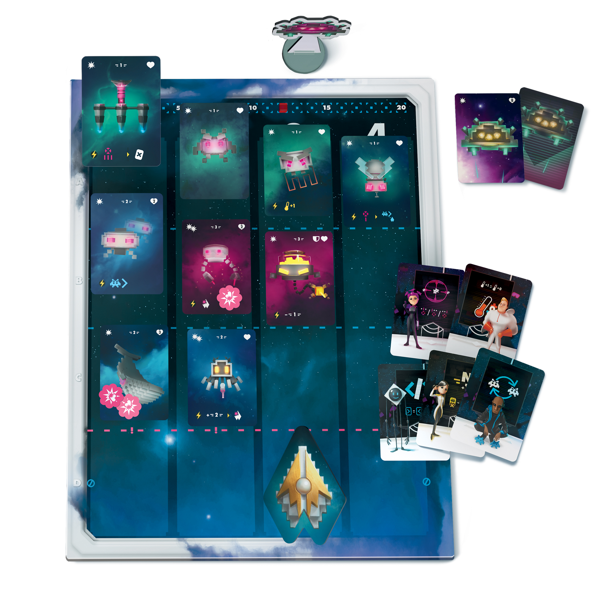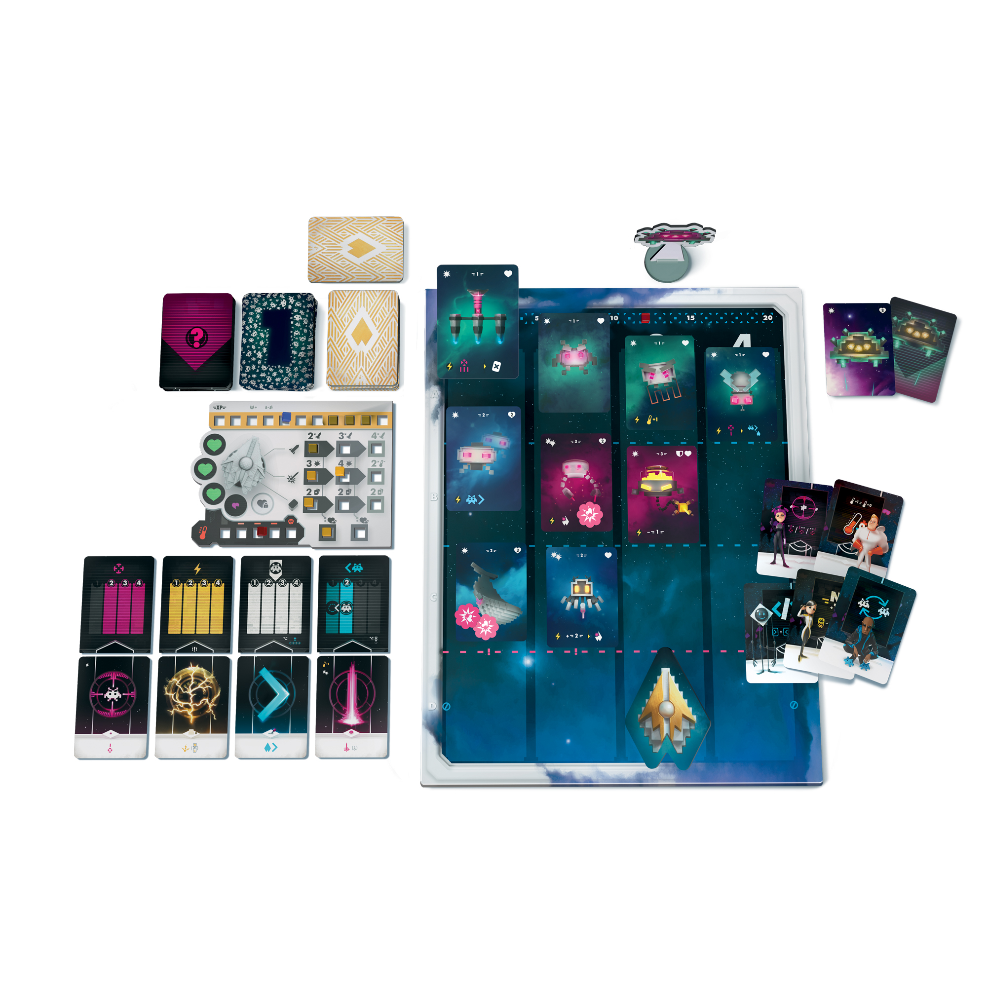 Bossin’ Space je kooperatívna hra pre jedného alebo štyroch hráčov. Čaká vás v nej putovanie naprieč vesmírom do neznáma a bojovanie s mimozemskými nepriateľmi. Ste prieskumníci, ktorí sa ocitli pod ťažkou paľbou. Vaše plavidlo Hviezdny hrot síce nemá armádnu výbavu, ale bezbranní nebudete. Vylepšujte svoju loď, prekabáťte nepriateľov a zostaňte nažive. OBSAH PRODUKTU: herný plán doska vylepšenia 13 kartónových žetónov 5 kartónových figúrok Bossov 162 kariet 11 plastových kociek 1 plastová figúrka zošit pravidiel pomocný list Parametre produktu: Rozmery krabice: 24 cm x 24 cm x 5 cm
